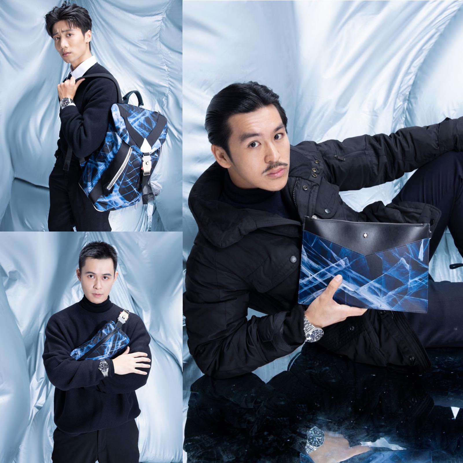 Balo, túi bao tử thuộc dòng Montblanc Meisterstück Selection Glacier và đồng hồ Montblanc 1858 Iced Sea Automatic Date mang đến những sắc thái lịch lãm, năng động khác biệt khi phối cùng những trang phục khác nhau.
