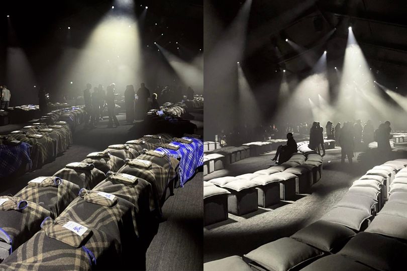 Không gian của buổi diễn được thiết kế bởi Giám đốc Sáng tạo Daniel Lee, lấy cảm hứng từ những chiếc lều Burberry ở những năm cuối thế kỷ 19 và đầu thế kỷ 20 nhằm tôn vinh sự kết nối với nguồn gốc và tinh thần khai phá thiên nhiên của thương hiệu, các vật dụng nội thất bên trong lều có chất liệu mang lại cảm giác ấm cúng, đối lập với thời tiết khắc nghiệt bên ngoài.