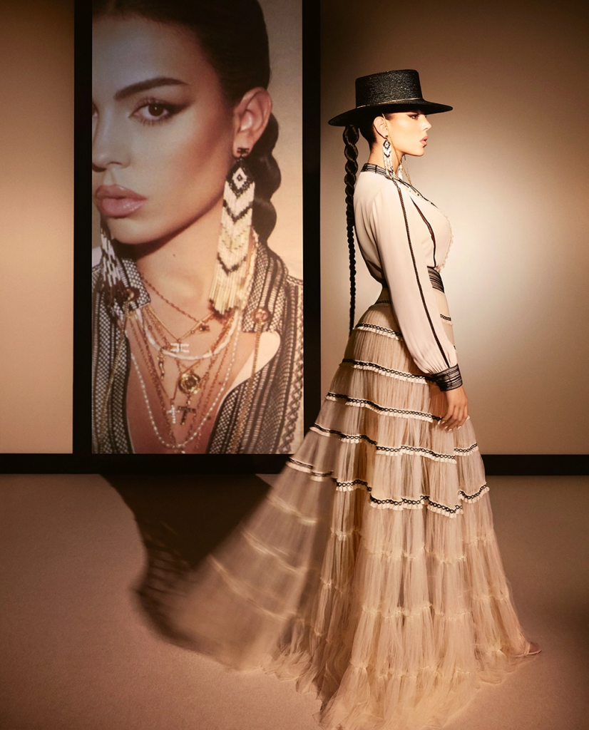 For the first time in the history of the fashion house, Elisabetta Franchi tapped an international name as the chosen brand ambassador embodying the idea of confident and self-aware womanhood. Lensed by Bologna-based photographer, Nima Benati, Georgina Rodríguez is the ideal protagonist of an individual and stylish narrative, which is open to external, aesthetic influences, different cultures, and new vibrations that serve as the fil rouge running through the Spring-Summer 2023 collection.