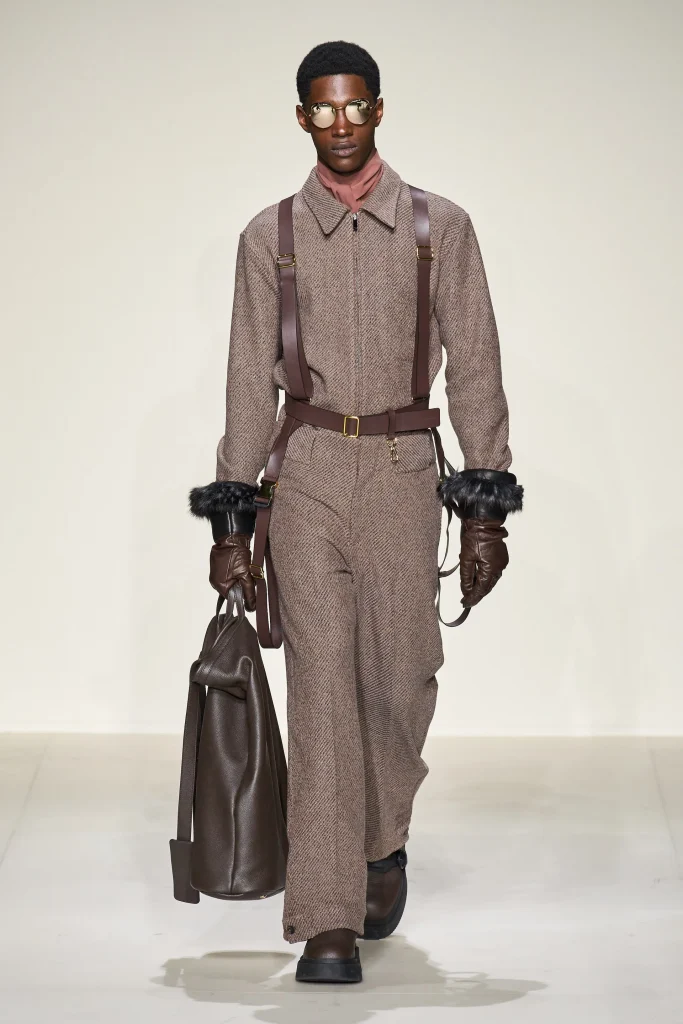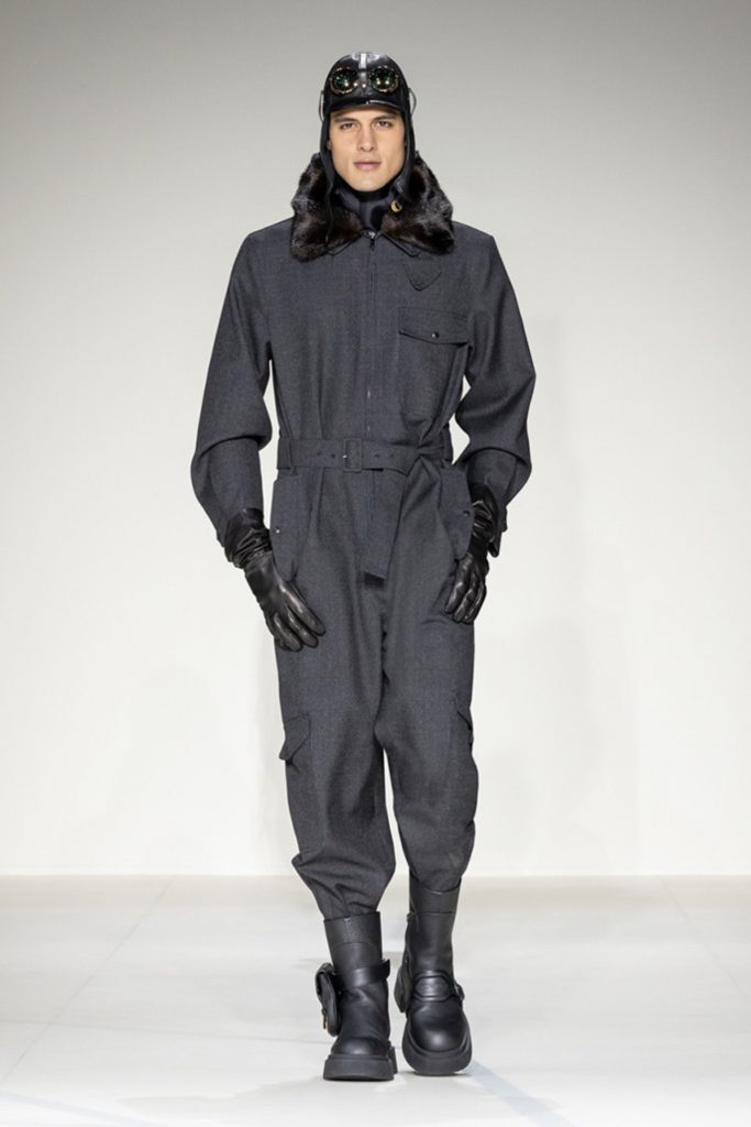 This collection is a tribute to the 1930s aviator and his world, to the sophisticated severity and adventurous precision of his style, to the metallic glints of the planes and hangars