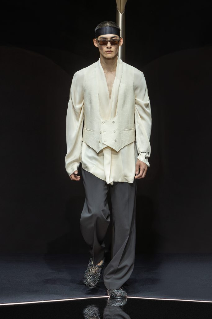 Một chủ nghĩa lãng mạn khô khan nhưng vô cùng sống động, được thể hiện bằng những đường nét mềm mại của nhà thiết kế tài ba Giorgio Armani. Bảng màu được thu gọn và cô đọng bởi: trắng, vàng cát, đen, trộn lẫn với nhau hoặc phối hợp đơn sắc. Khoảng cách giữa cơ thể và trang phục không mang đến sự gò bó, mà ngược lại tạo nên những đường uyển chuyển đầy mê hoặc.