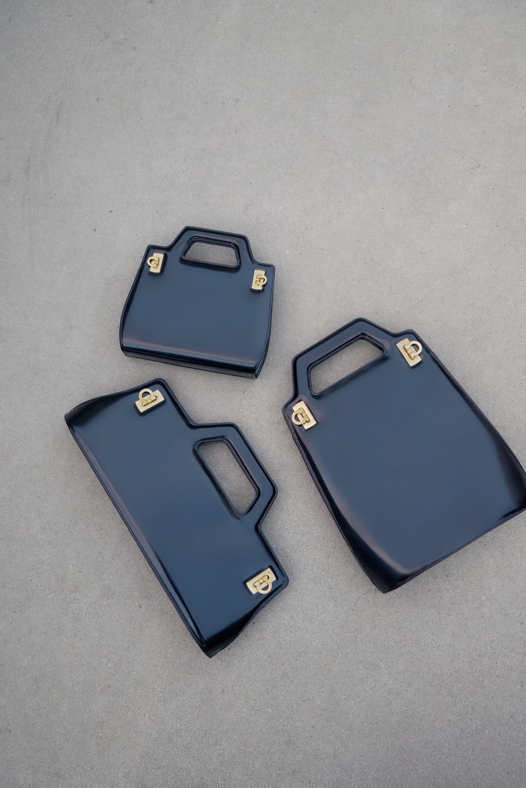 The capsule collection designed by Creative Director Maximilian Davis features silk foulards, shirts and skirts, a crewneck sweater, a city jacket and soft cotton t-shirts flanked by low-top sneakers, the Gancini buckle belt, small leather goods and signature carryalls including the Trifolio and Studio bags.