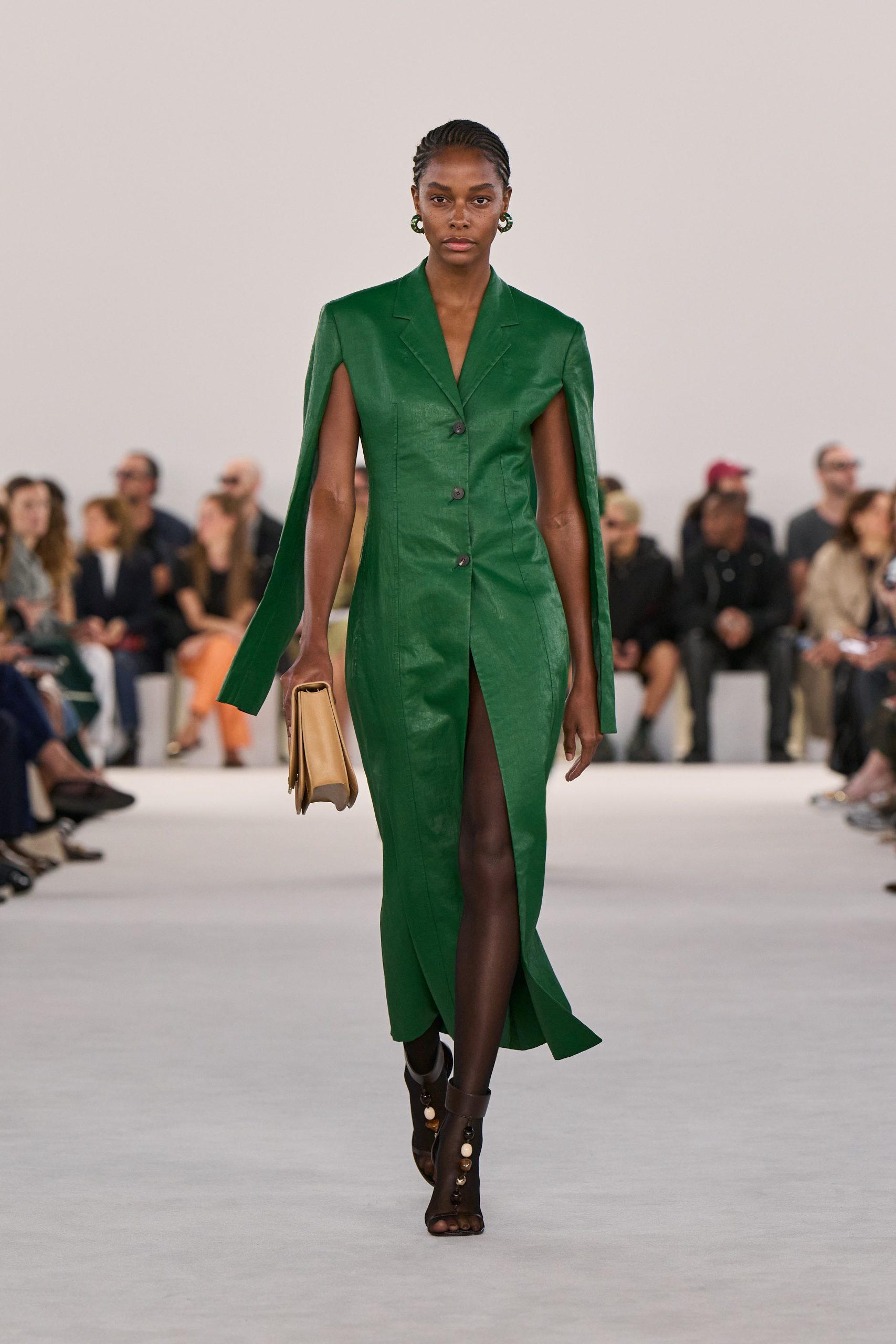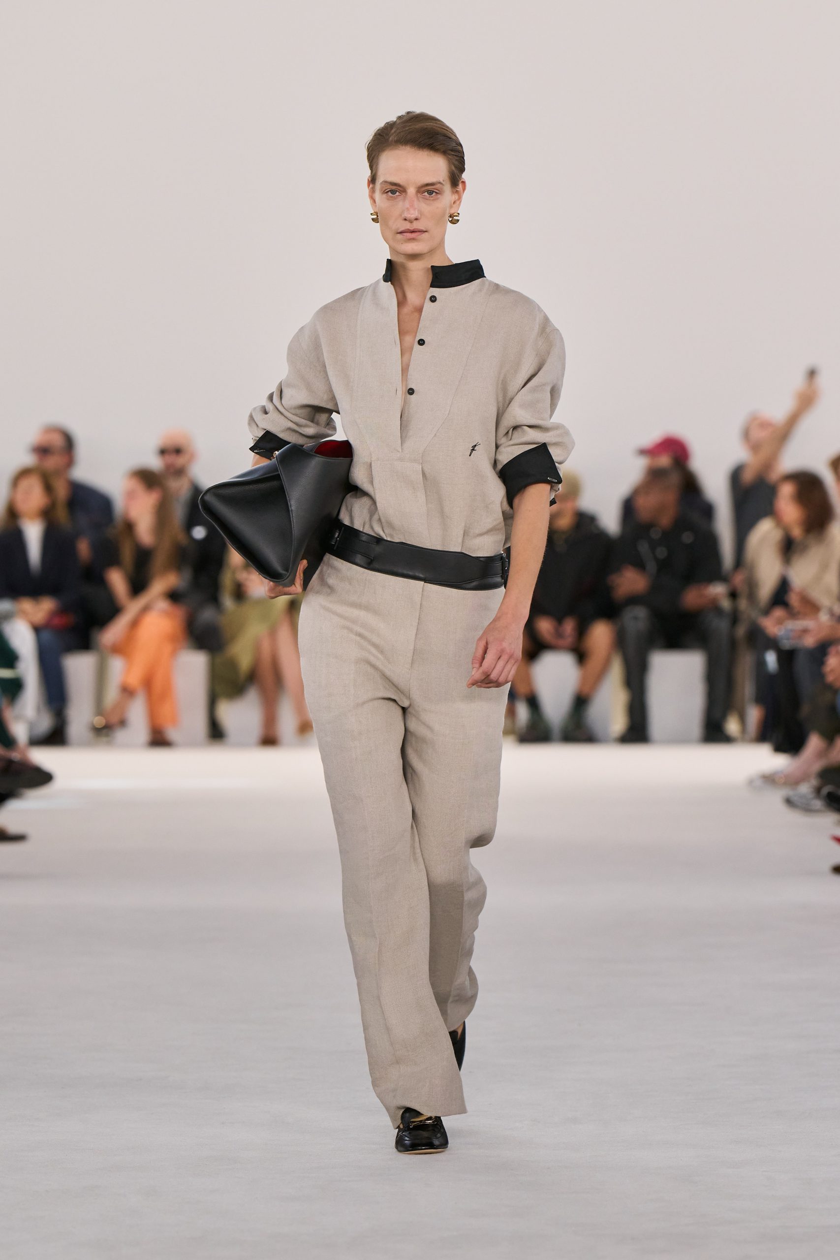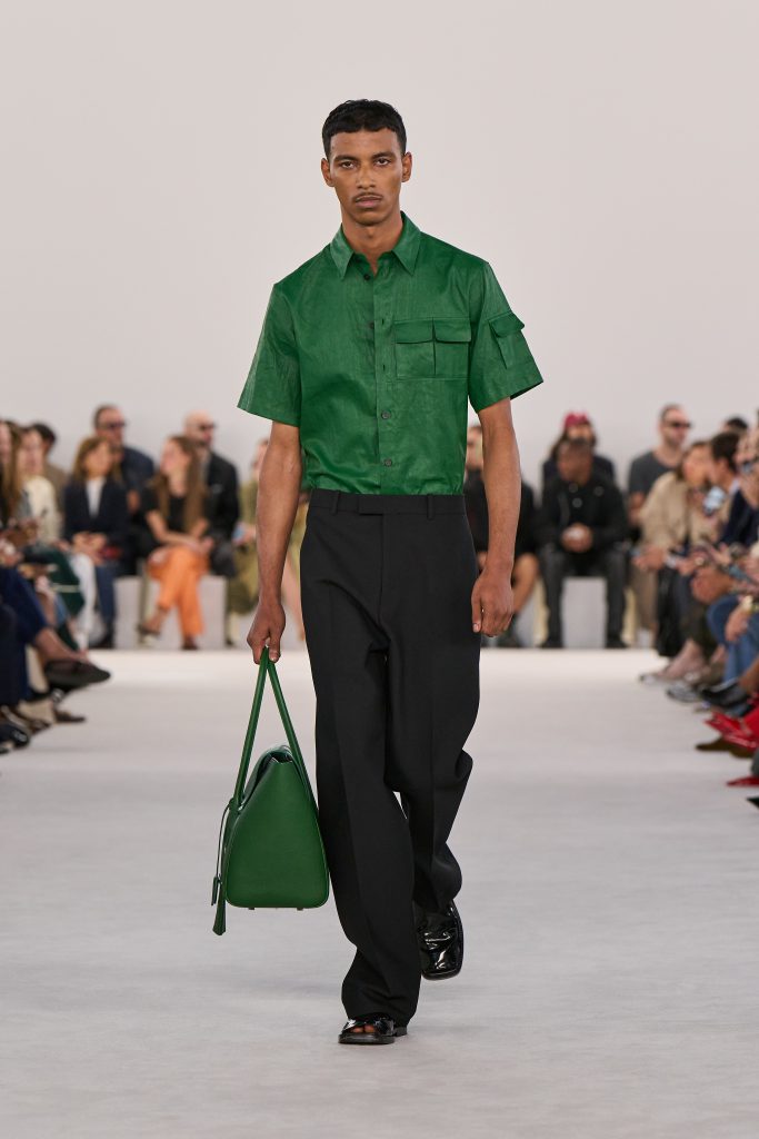 For Spring-Summer 2024, Maximilian Davis explores and evolves the codes he has developed at Ferragamo, imbuing his distinct aesthetic with organic ease while drawing on the relationship between balance and tension. “I wanted things to feel a lot lighter, both in terms of fabric and construction but also in terms of how people want to dress,” Davis explains. “There’s a familiarity I have found in the Italian way of dressing and living: an effortlessness which feels very Caribbean. The idea of doing everything at your own pace, on your own time.”
