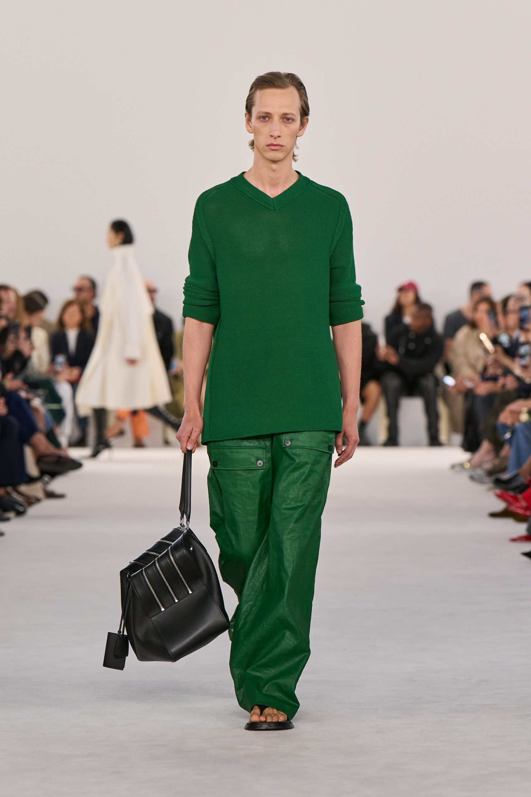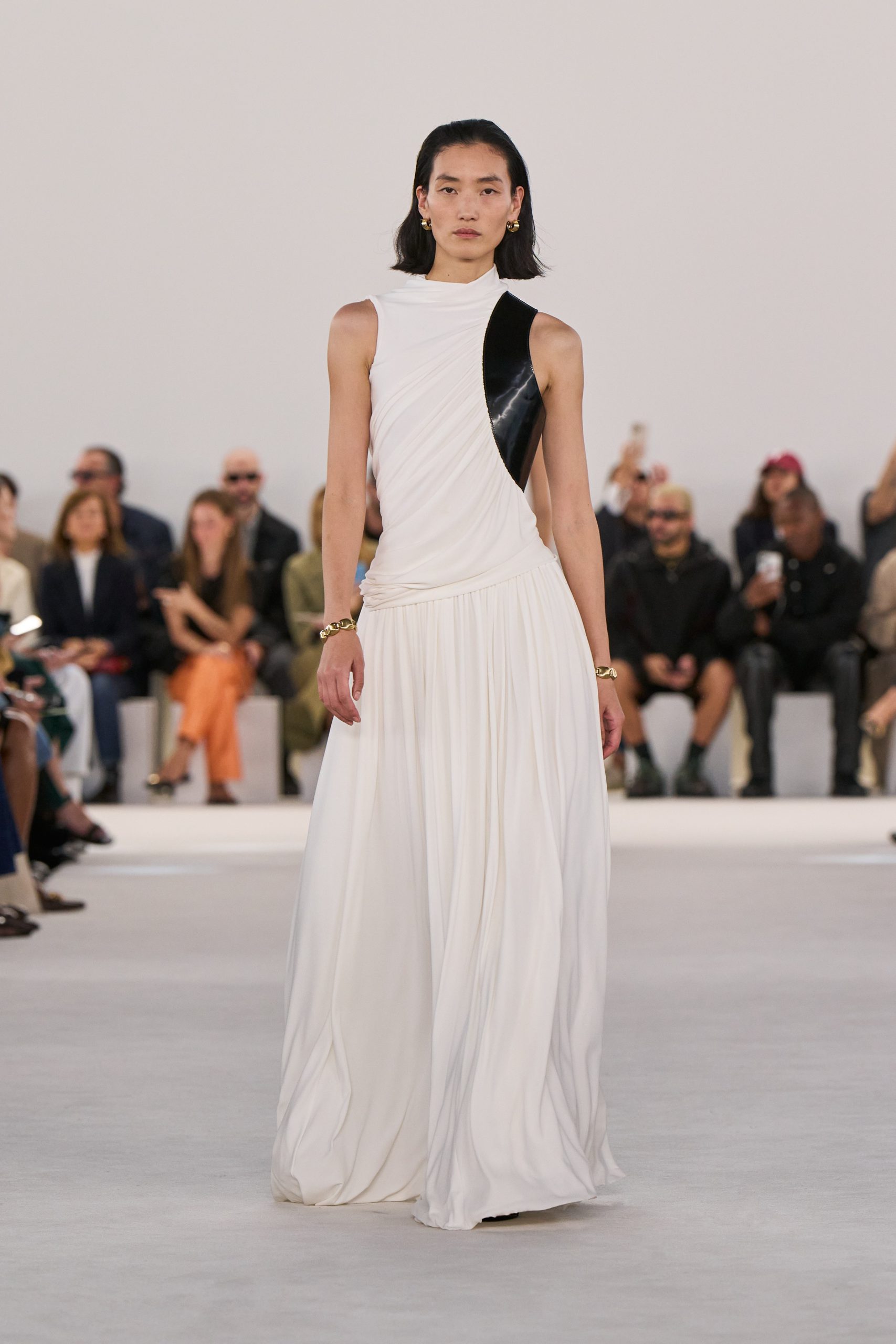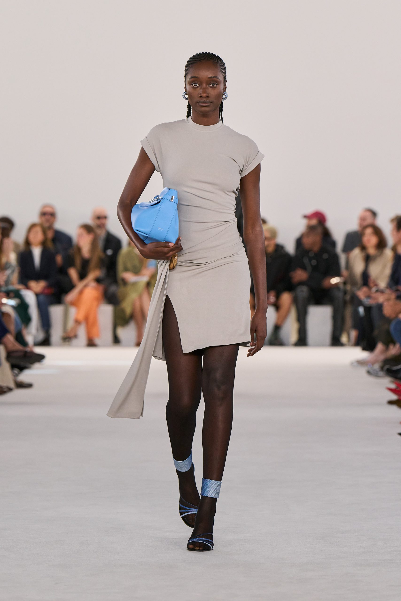 For Spring-Summer 2024, Maximilian Davis explores and evolves the codes he has developed at Ferragamo, imbuing his distinct aesthetic with organic ease while drawing on the relationship between balance and tension. “I wanted things to feel a lot lighter, both in terms of fabric and construction but also in terms of how people want to dress,” Davis explains. “There’s a familiarity I have found in the Italian way of dressing and living: an effortlessness which feels very Caribbean. The idea of doing everything at your own pace, on your own time.”