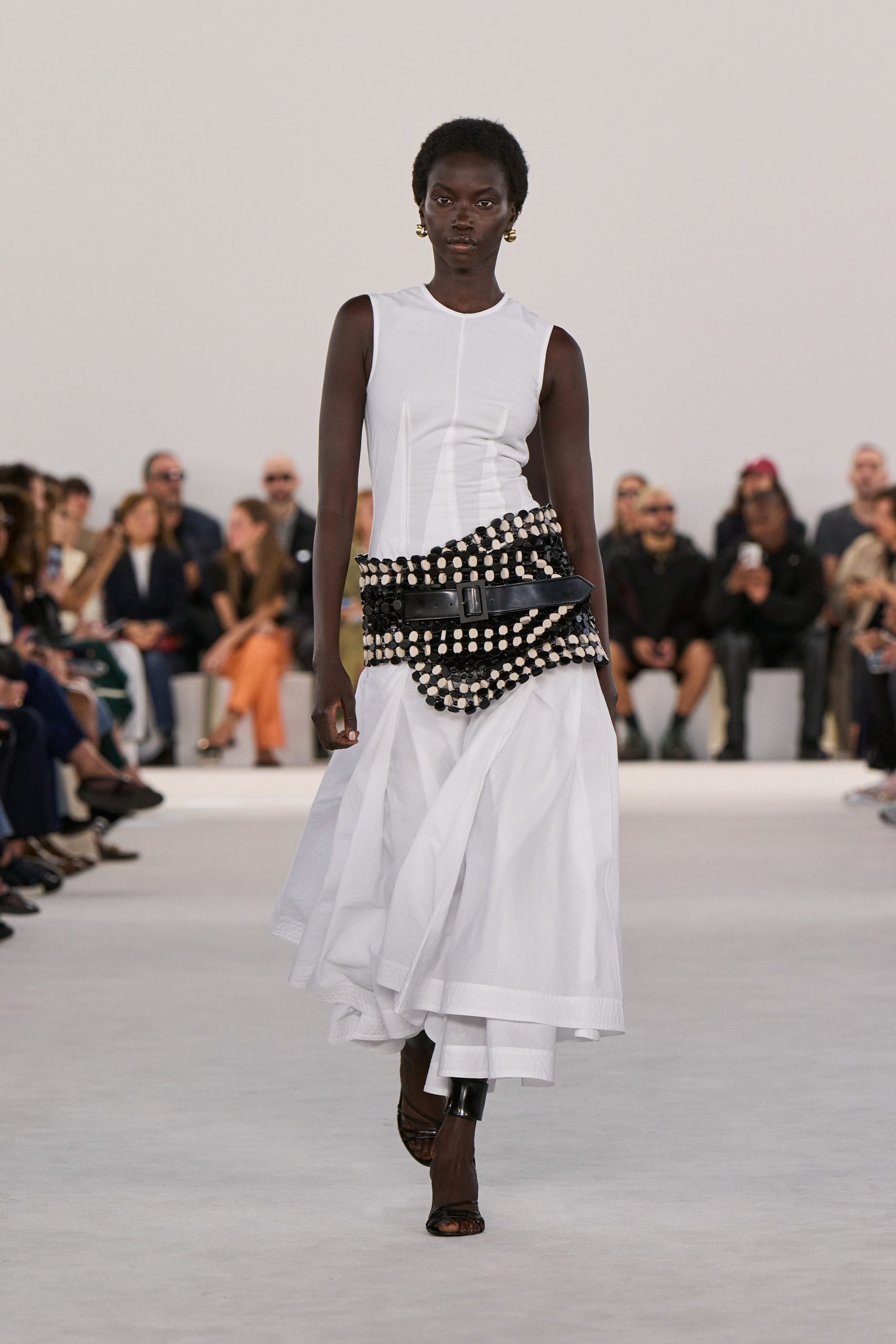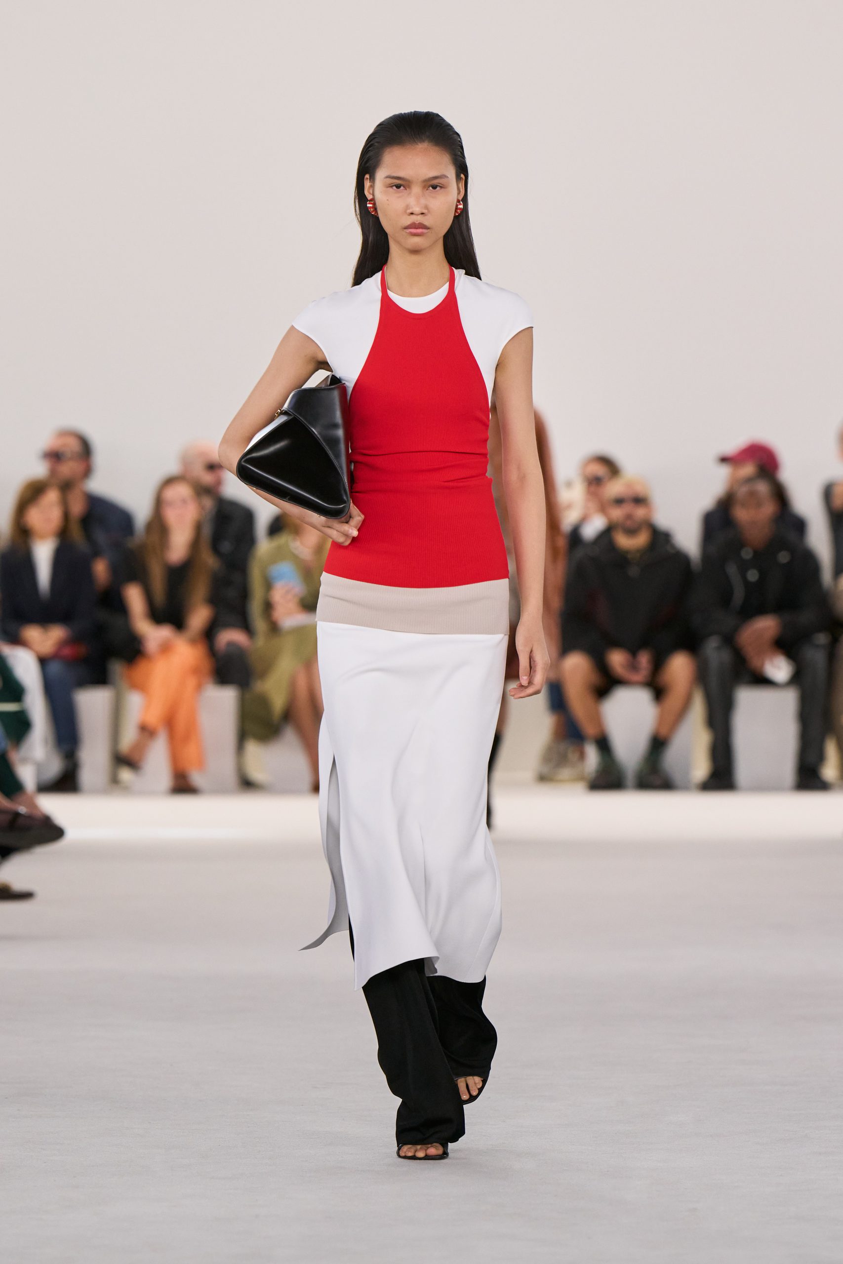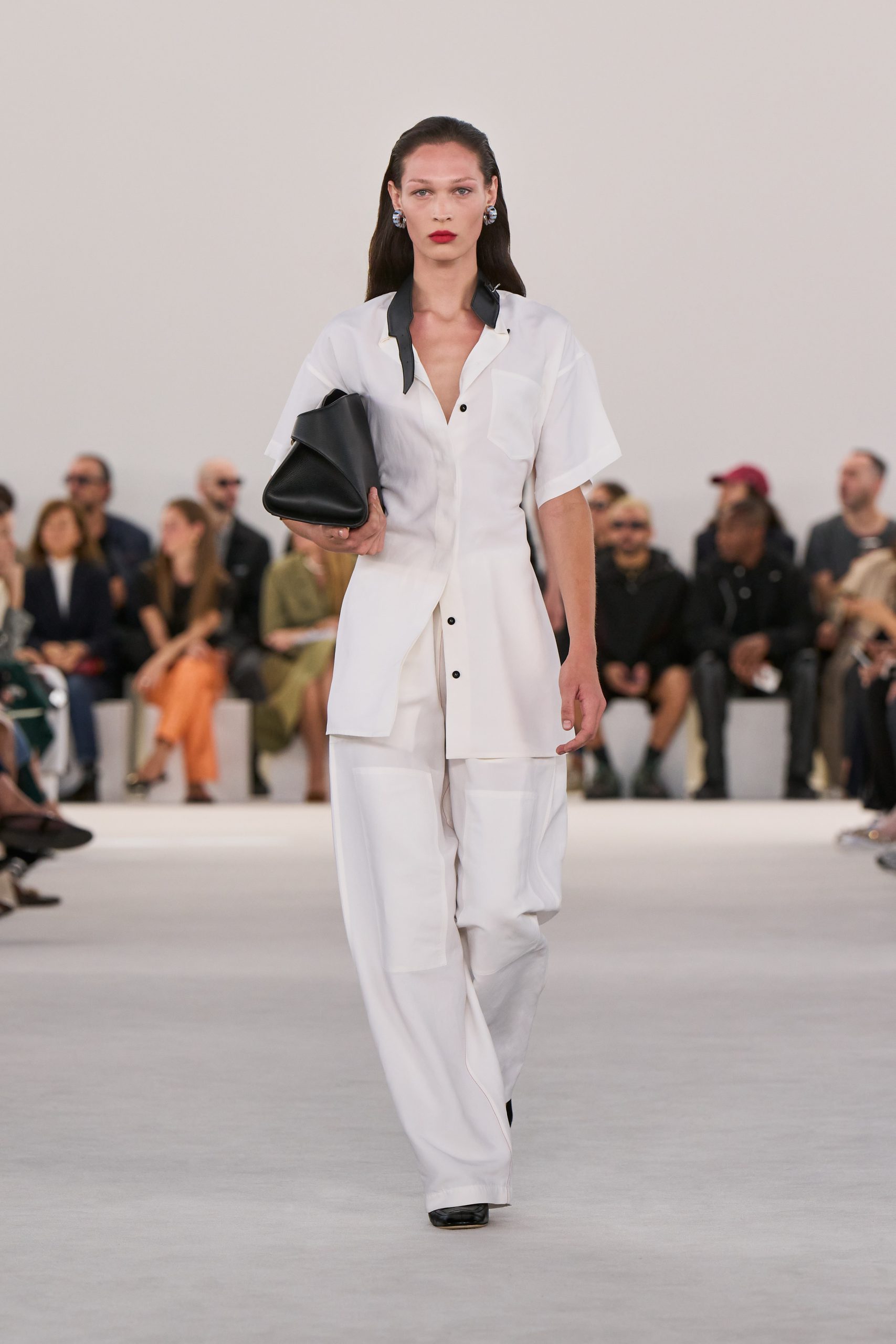 For Spring-Summer 2024, Maximilian Davis explores and evolves the codes he has developed at Ferragamo, imbuing his distinct aesthetic with organic ease while drawing on the relationship between balance and tension.