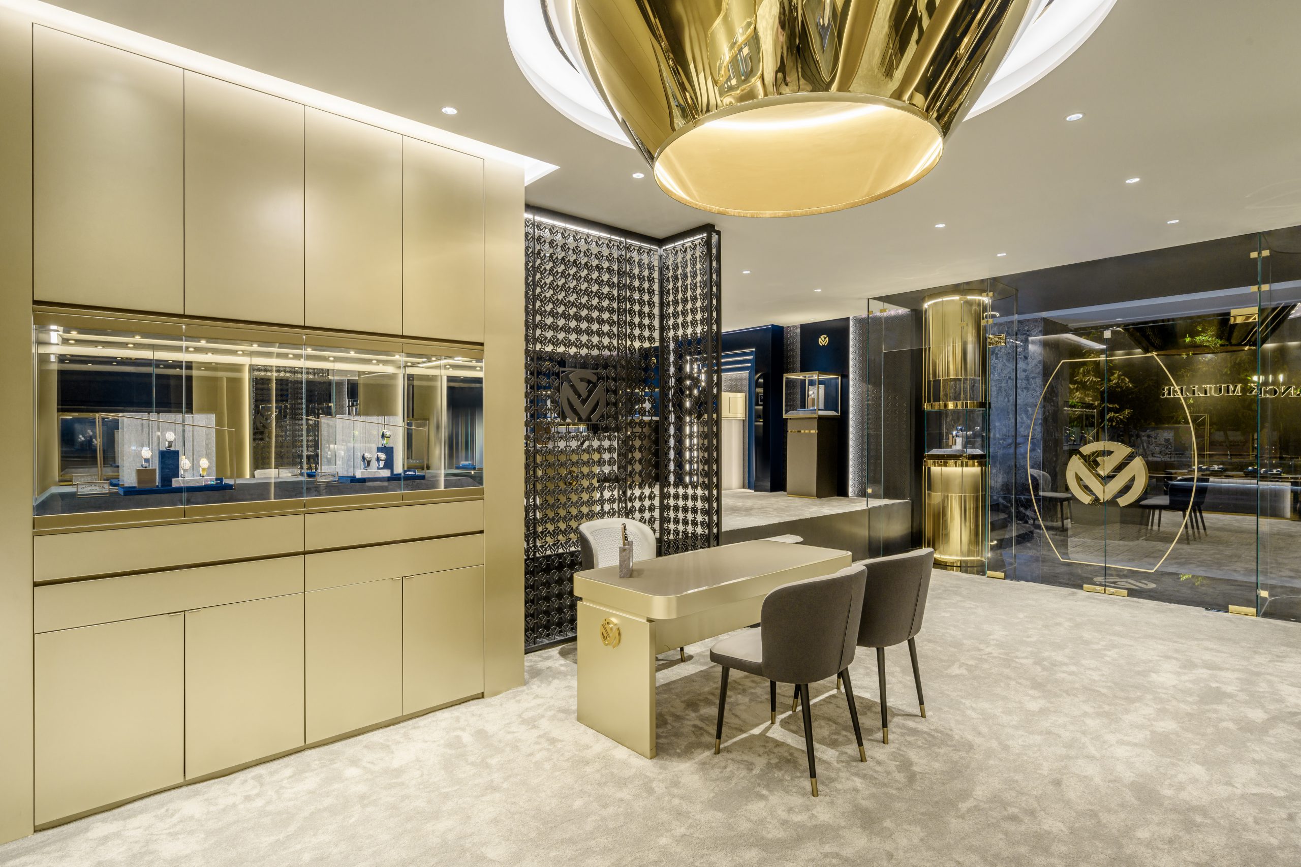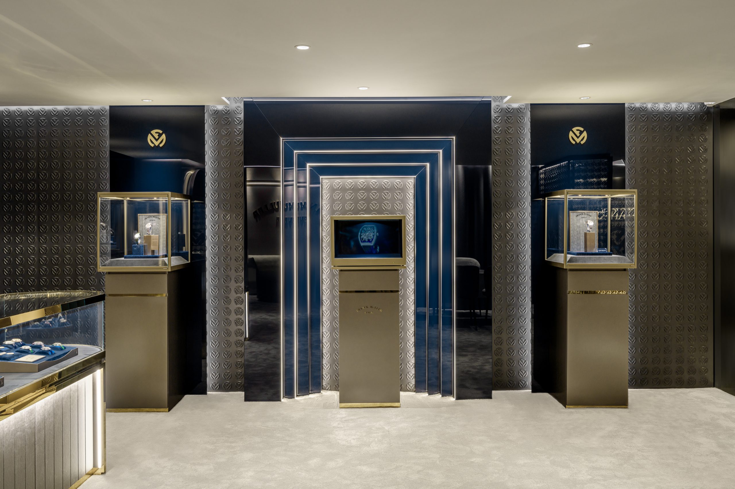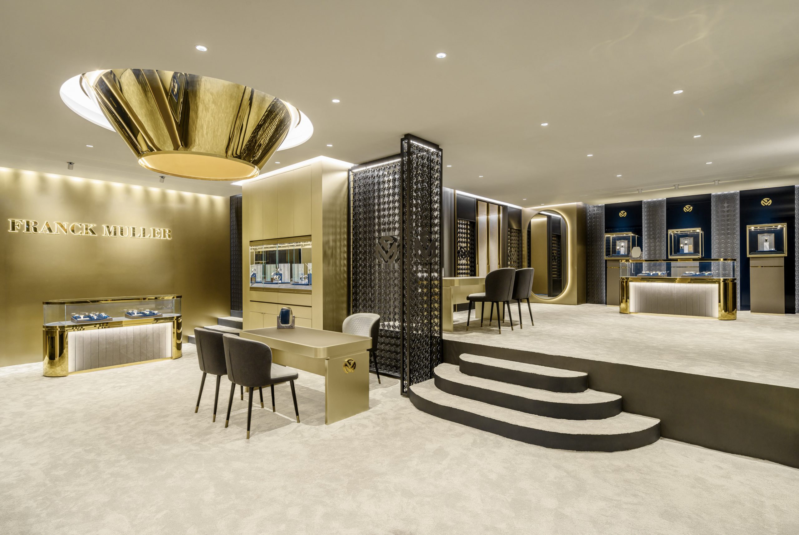 Following a rebrand in 2021, Franck Muller unveiled its new store concept. Since then, it has rolled out the design in boutiques across the region, with the latest being in Ho Chi Minh City. As is with the original DNA, a strong importance is placed on spatial quality. This is immediately evident from its exterior, which eschews a regular box-like structure. Instead, a double-door glass entrance is flanked by standalone sections, carved out on each side, used to showcase everything from Grand Complications to art installations inspired by Franck Muller.