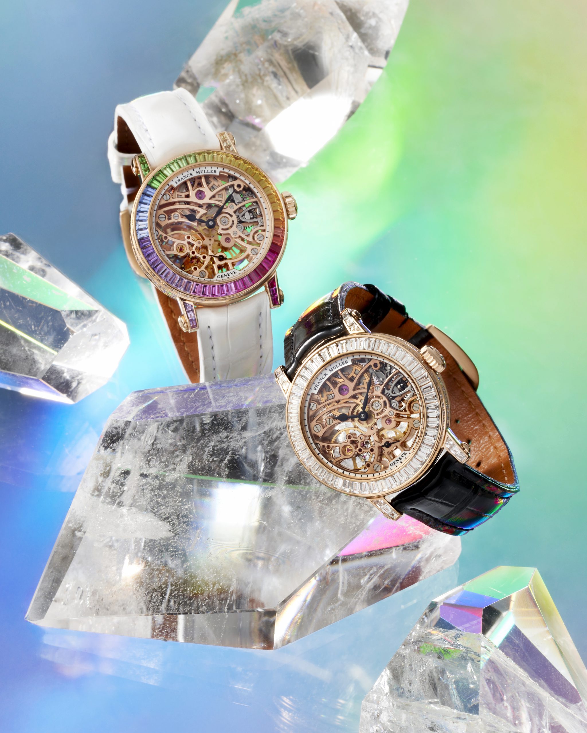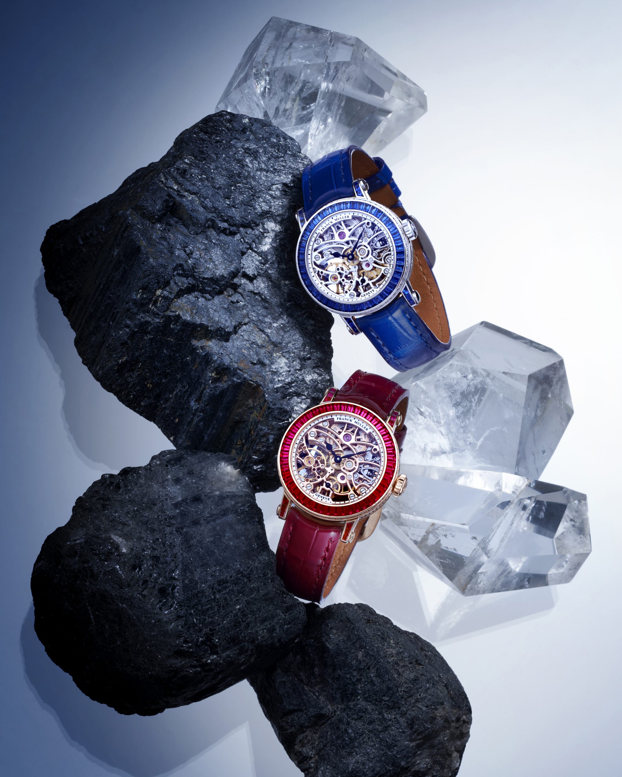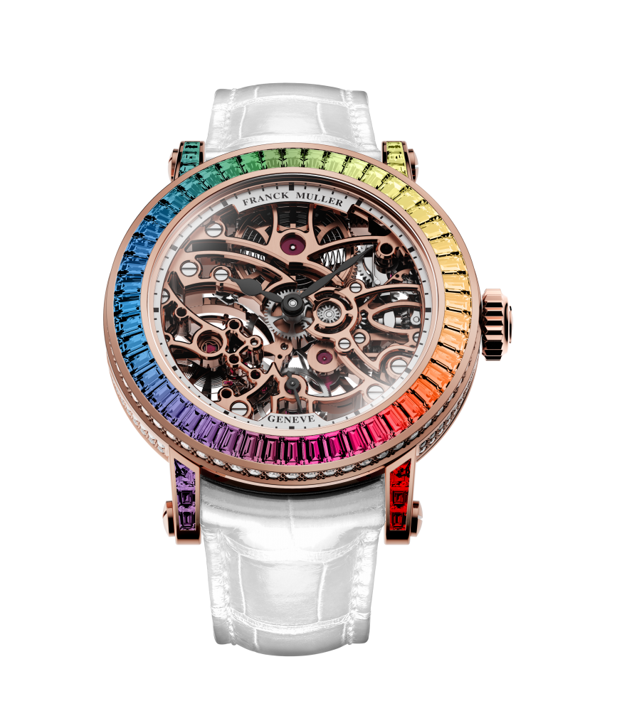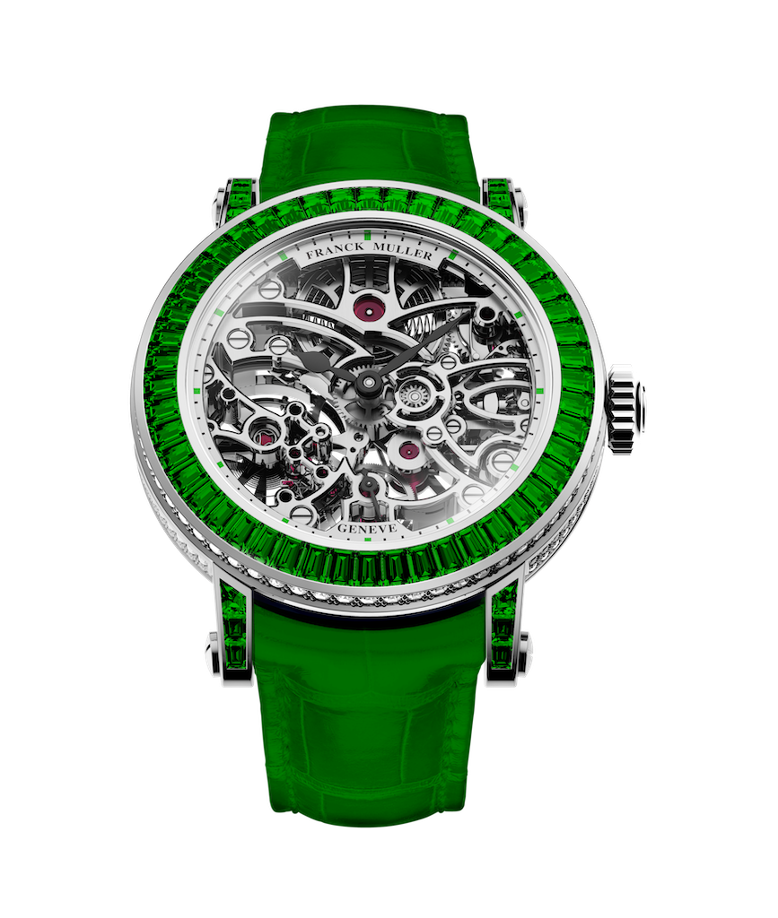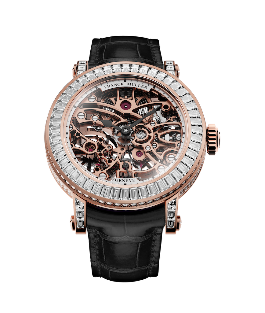 Franck Muller offers an iconic piece as its High Jewellery launch for 2024: the Round Skeleton Baguette in 31mm, an exceptional collection set with baguette diamonds or precious gems, reflecting the perfect marriage between the world of Fine Jewellery and Haute Horlogerie.