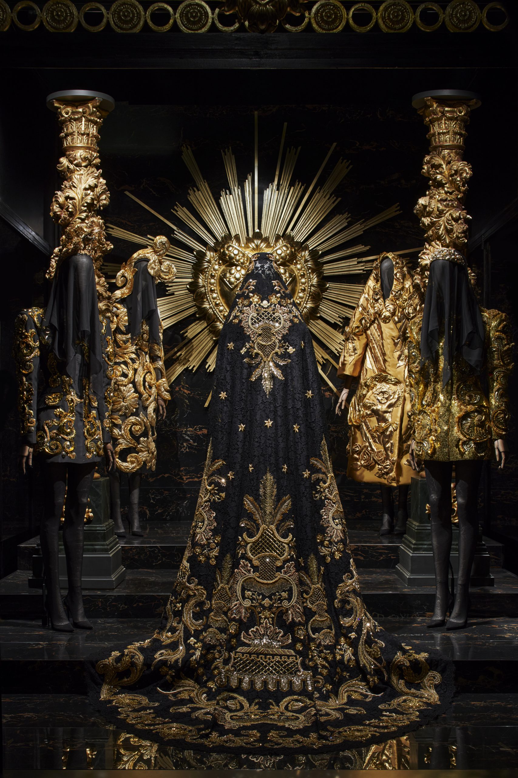 Tình yêu vĩnh cửu vượt mọi không gian và thời gian – đó chính là sự cống hiến. A love that goes beyond the boundaries of time and space, which has no limits but lives in eternity, this is devotion. The undisputed and unconditional devotion of Domenico Dolce and Stefano Gabbana to style, to work, to detail, to the essence of fashion itself, made of craftsmanship, a sense of belonging, passion and creativity flows into a true cult for the Bello e Ben Fatto (the Beautiful and Well Made): under the aegis of the Sacred Heart, the room presents a contemporary sancta sanctorum, a treasure chest that houses a selection of Alta Moda and Alta Gioielleria creations that alternate the dynamic relationship between Sicilian black and the baroque opulence of gold.