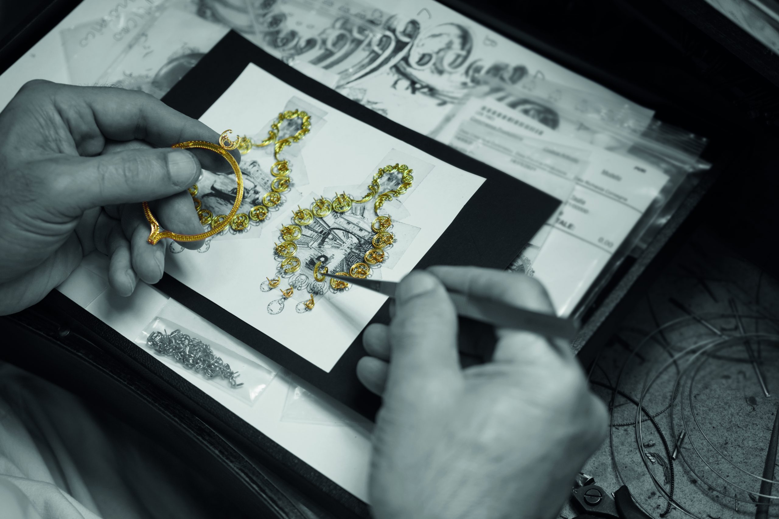 Fashion and architecture are two sides of the same coin, two forms of art in constant dialogue. Creating a piece is like developing a building. The architect projects a building starting from sketches, studies the forms, the symmetries, the volumes, and then goes on to make decorative choices, from colors to materials. Creating fashion follows the same approach. The same mastery relives in the paintings from the Renaissance: the prospective, the vibrant colors, the drapery of the clothes are all elements that have always inspired our collections, from the Alta Moda to the Alta Gioielleria.