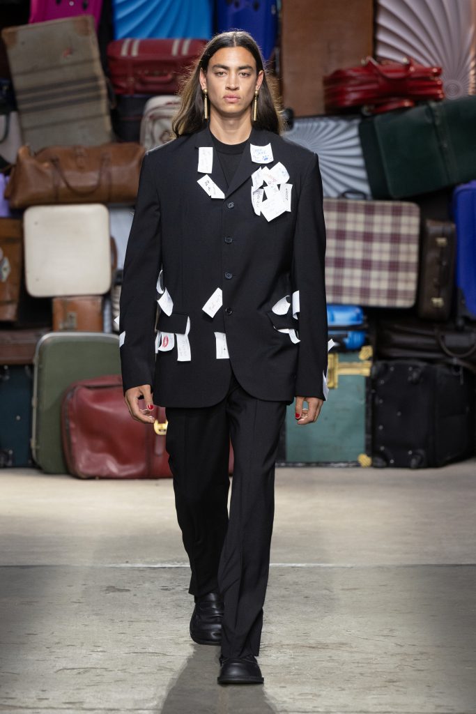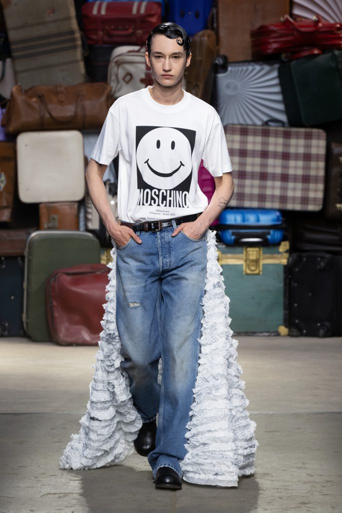 Individuals, characters, humanity. The second Moschino show by creative director Adrian Appiolaza is an expression of the uniqueness of people. Each look, like each person, stands alone, and has something of its own to say.
