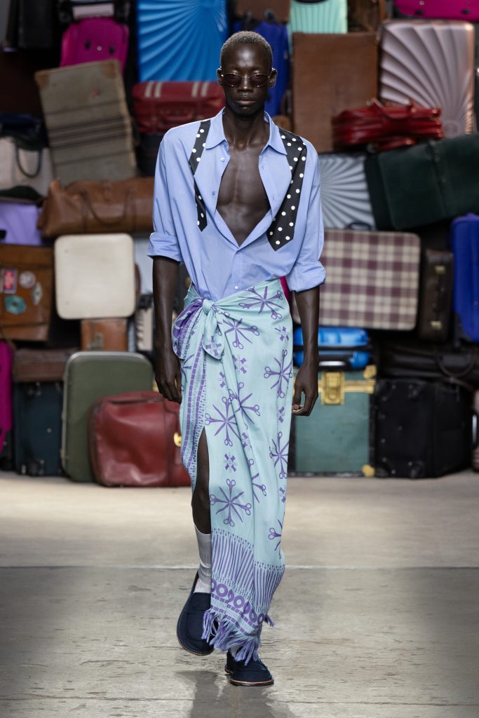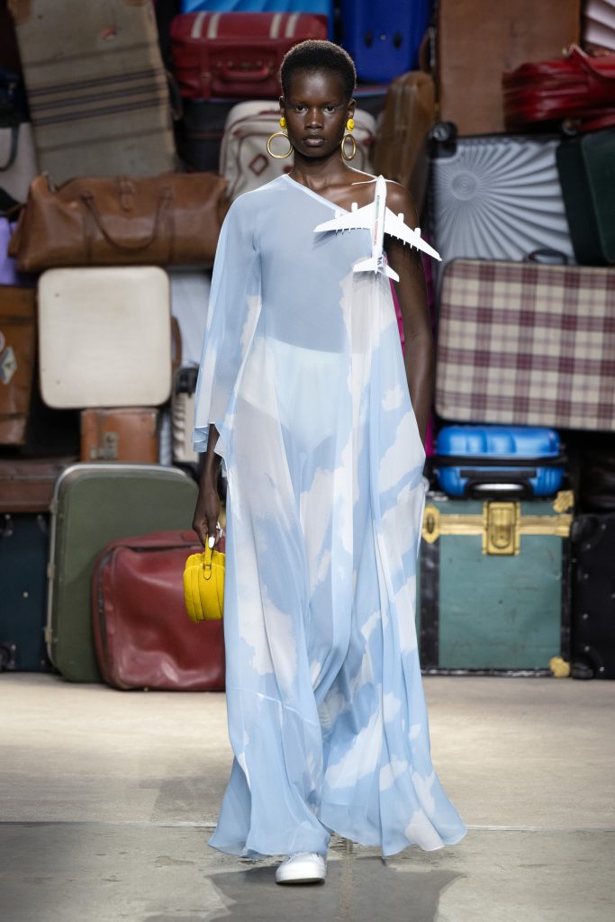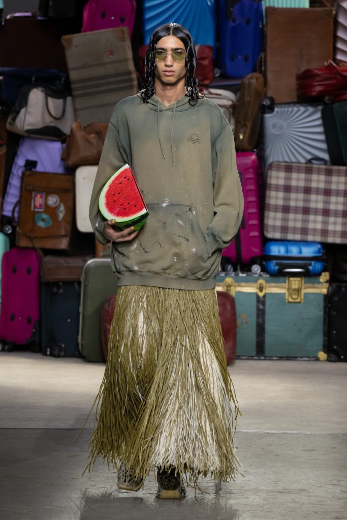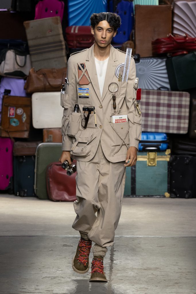 The collection is an exploration, of exploration – exploring the world, exploring your mind, exploring Moschino. A move from the urban chaos of the city to discover paradise – literal, and personal freedom. Fundamentally Moschino.