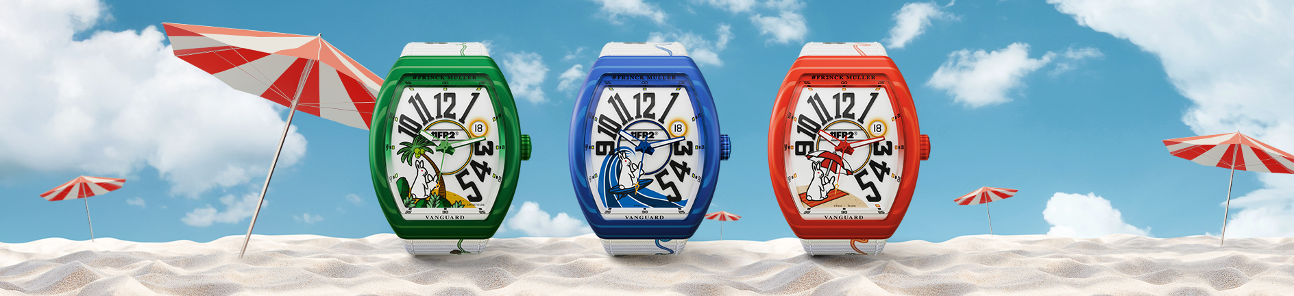 Following the success of the first collaboration, Franck Muller and cult Tokyo streetwear label #FR2 reunite for a new summer-ready statement: the #FR2NCK MULLER Vanguard Beach Limited Edition.