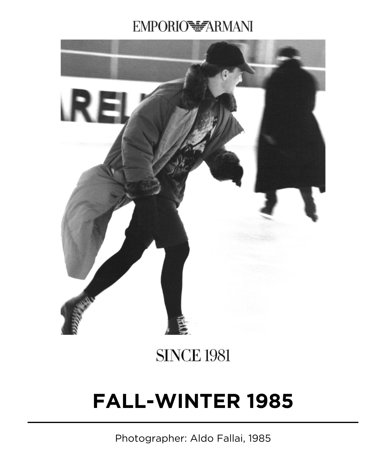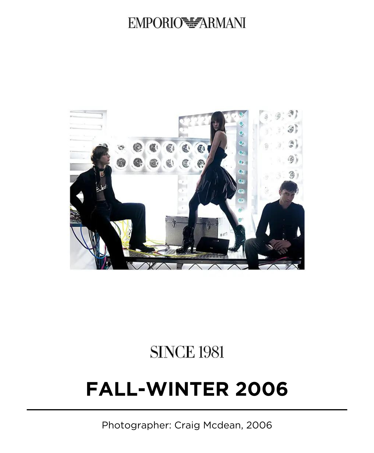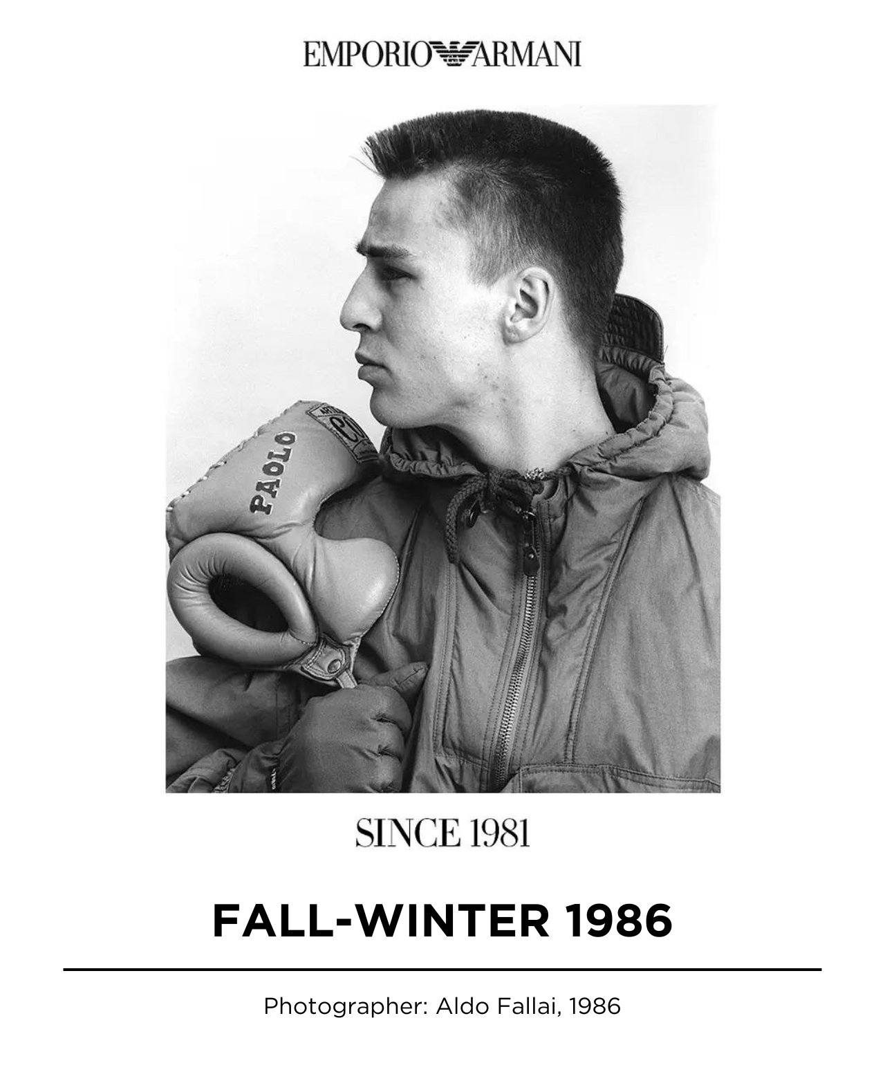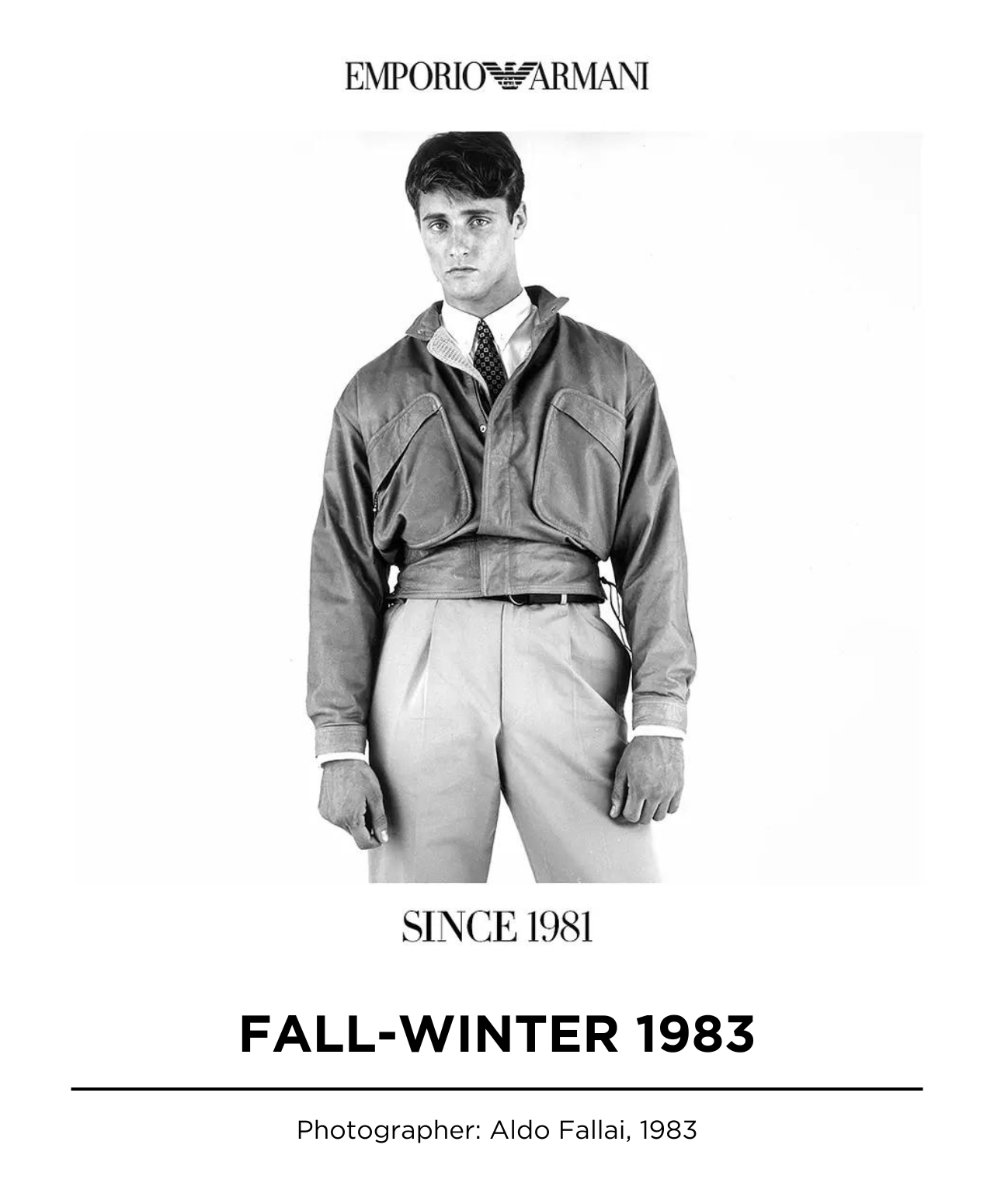 In 1981, driven by the desire to extend the Armani dream to all fashion devotees, the eagle soared emblem of Emporio Armani is into existence, representing the zeitgeist spirit of aspiration, belonging, freedom, and forward-thinking vision embodied by designer Giorgio Armani.