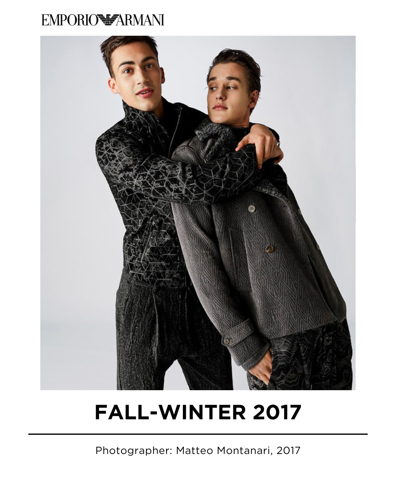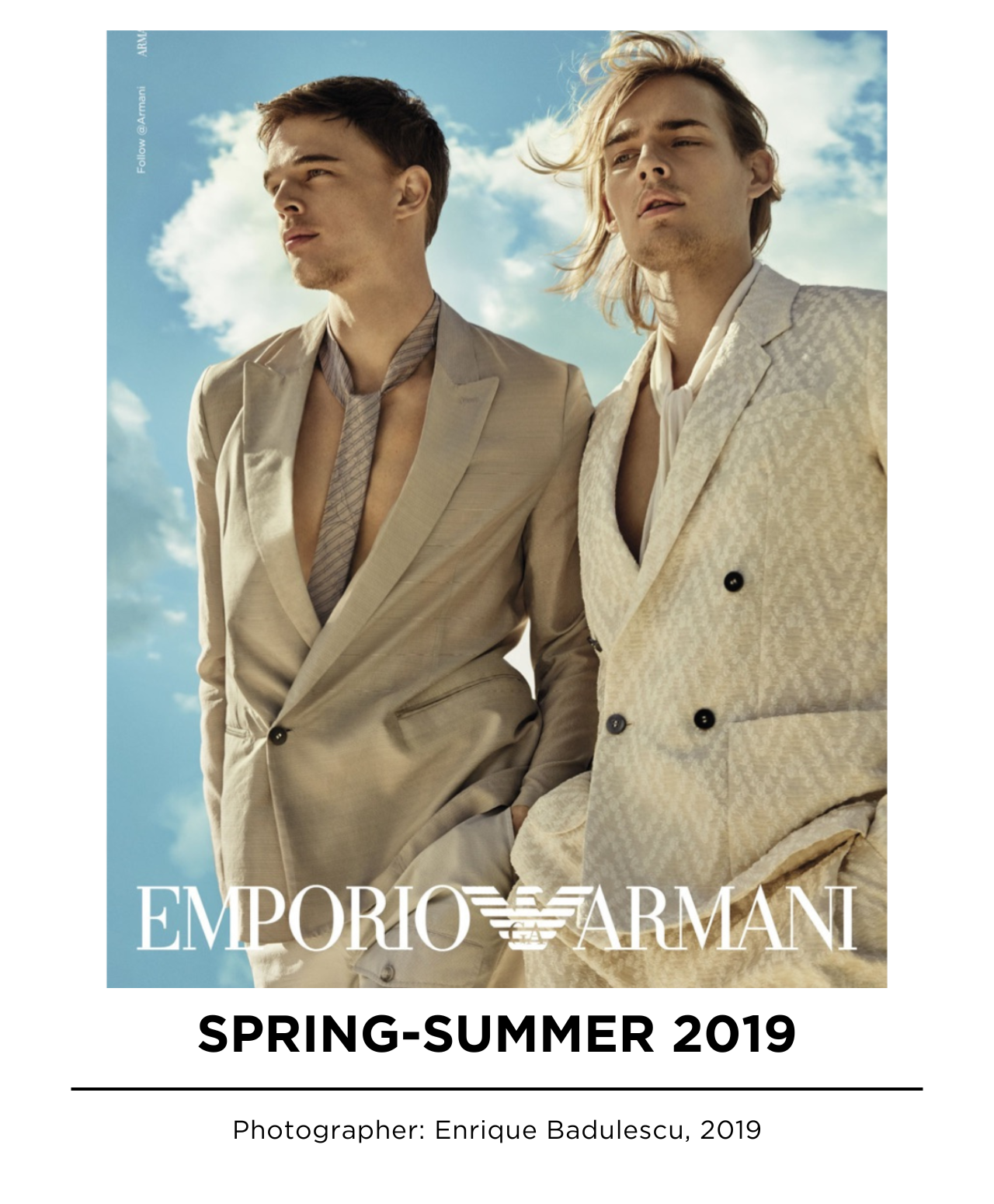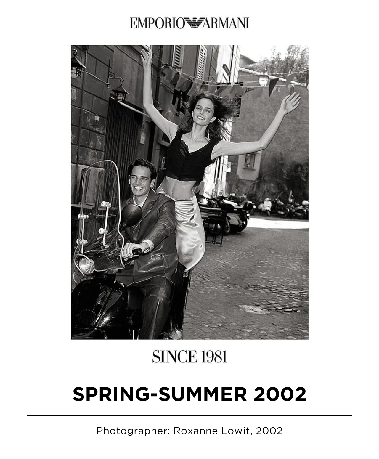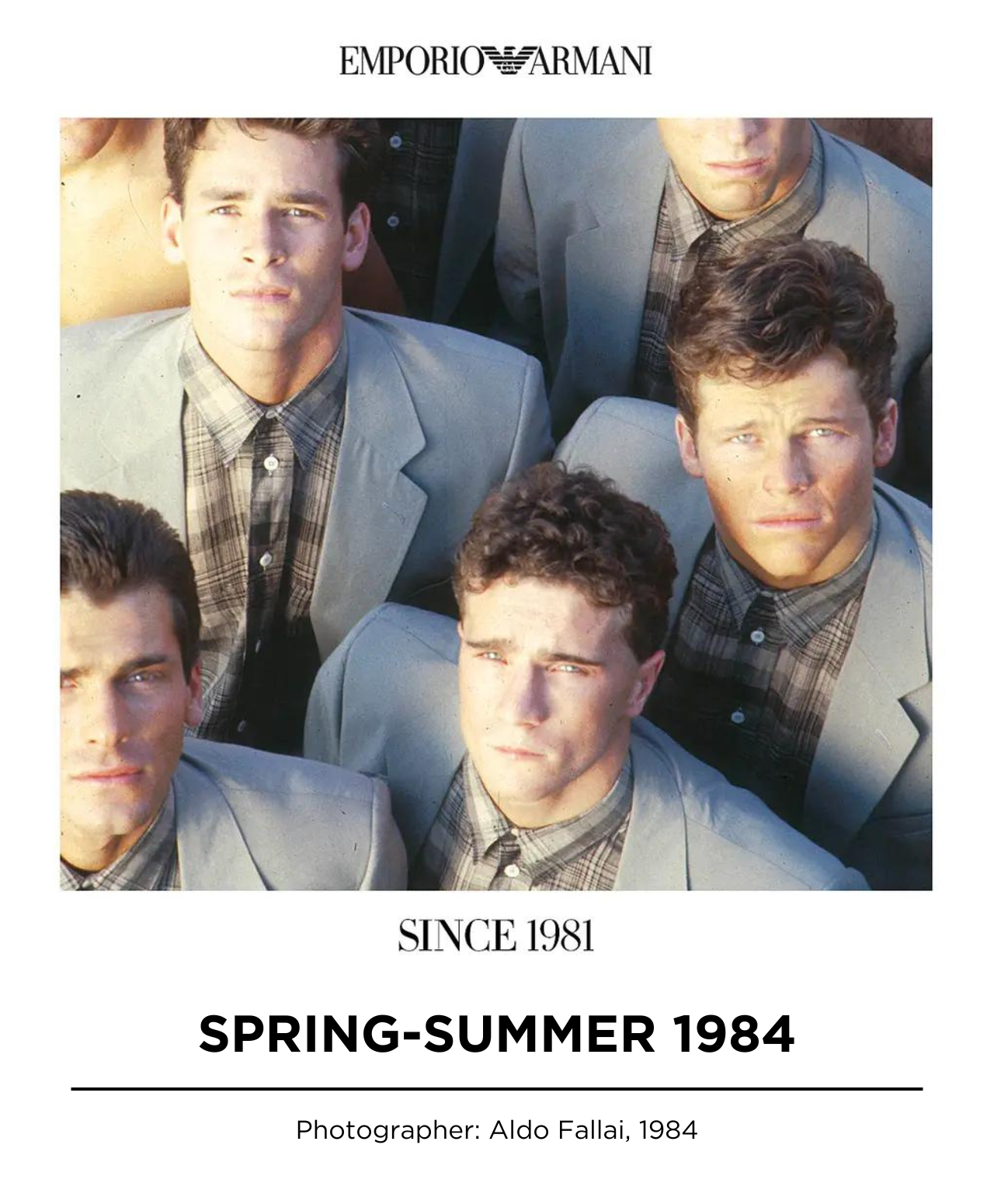 An exclusive collection of archival photographs from some of Emporio Armani’s most famous campaigns. This selection celebrates 40 years of eternal, iconic styles, as well as Emporio Armani’s aesthetics and values.