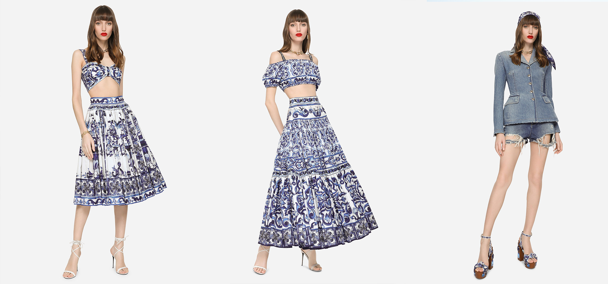 Dolce&Gabbana bày tỏ sự tôn kính đối với nghệ thuật gốm (majolica art) cổ đại từ Caltagirone trong một BST với sắc thái rực rỡ của màu trắng và sắc thái đậm nhất của màu xanh lam.
