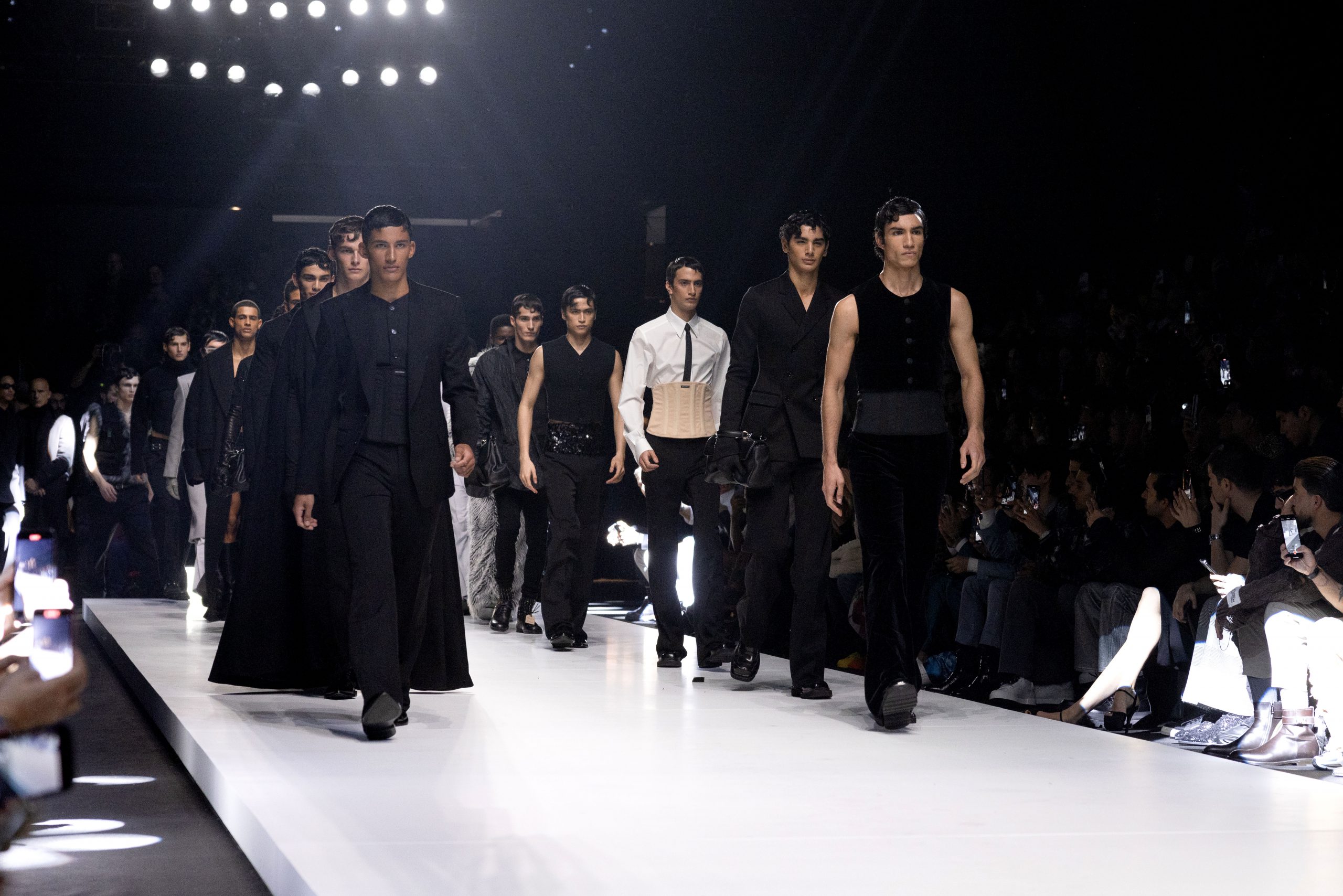 Sự phóng đại trong mẫu dáng và đường nét của những thiết kế góp phần tôn lên sự hoàn hảo của các đường cắt. Cấu trúc thượng tầng của đai/áo corset và dải quấn/khăn choàng quanh thắt lưng làm sống lại các yếu tố trong bộ sưu tập FW 1999/00 của Dolce & Gabbana.