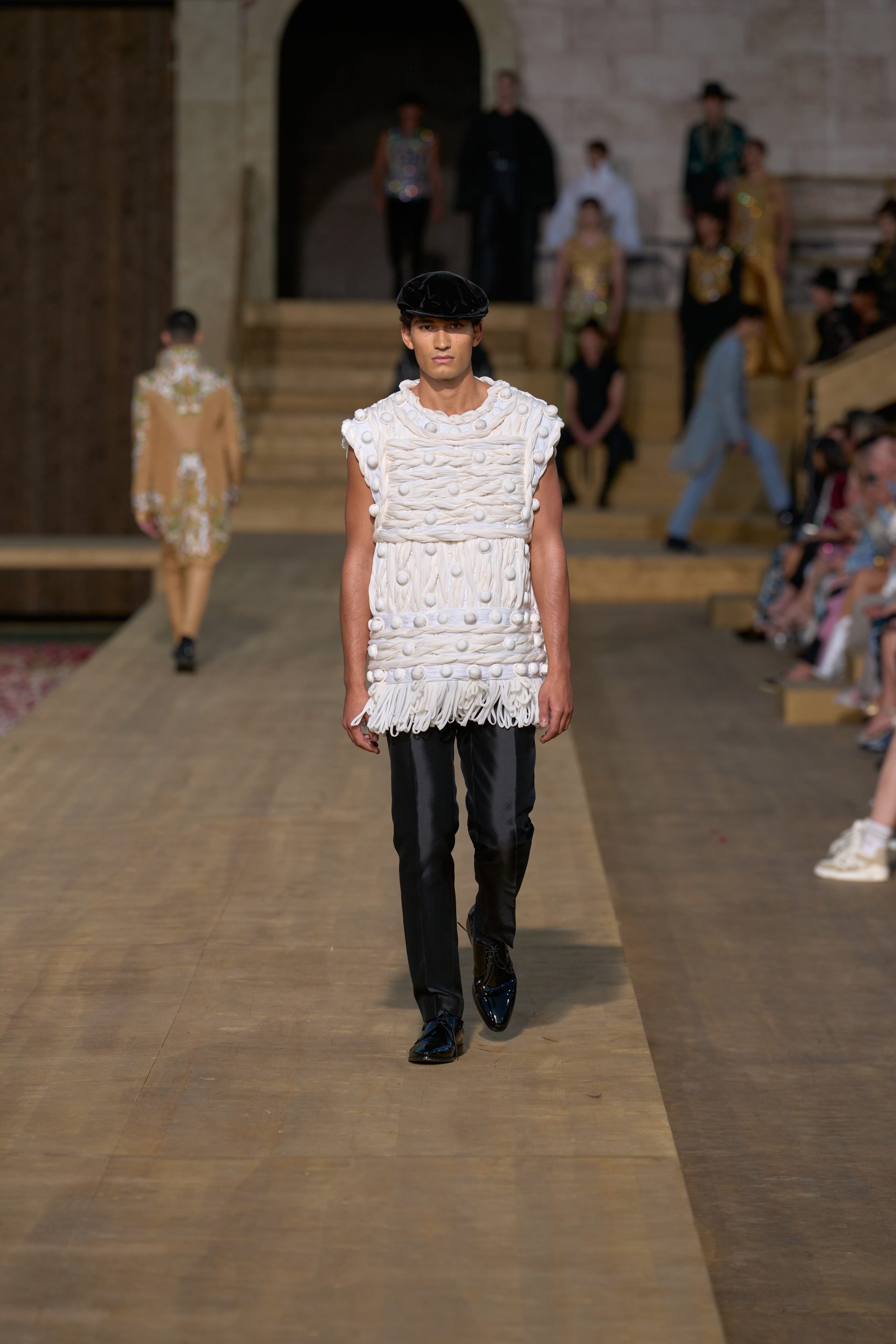 Những thiết kế trong show diễn Alta Sartoria lần này được lấy cảm hứng từ Lễ hội Sant’Efisio và văn hóa dân gian Sardinia, cả trong việc lựa chọn họa tiết trang trí và chất liệu, cũng như trong khâu thủ công.