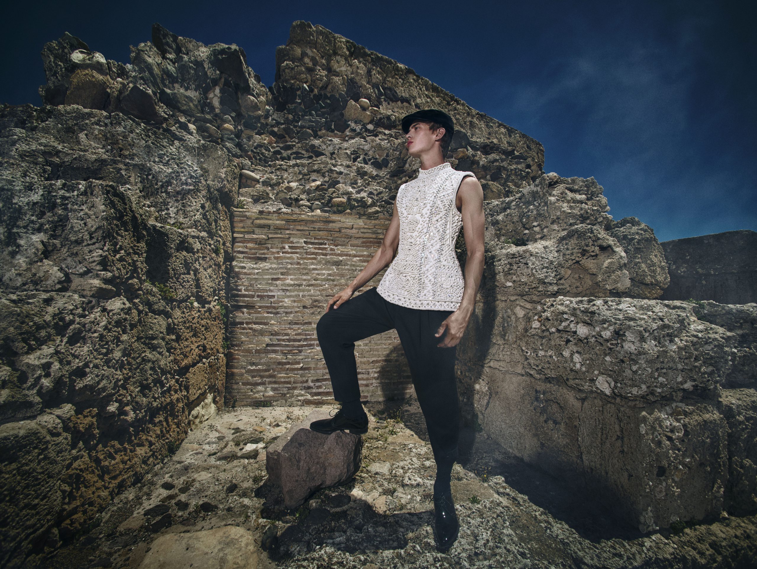 Bộ sưu tập sẽ không thể hoàn thiện nếu không có sự tôn vinh dành cho thế giới chăn nuôi và chiếc áo khoác len lớn đặc trưng mastruca, được mặc bởi Mamuthones trong lễ hội Carnival Mamoiada.