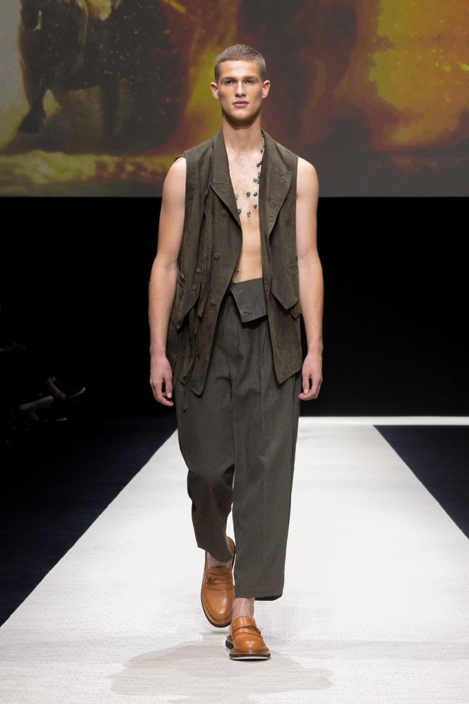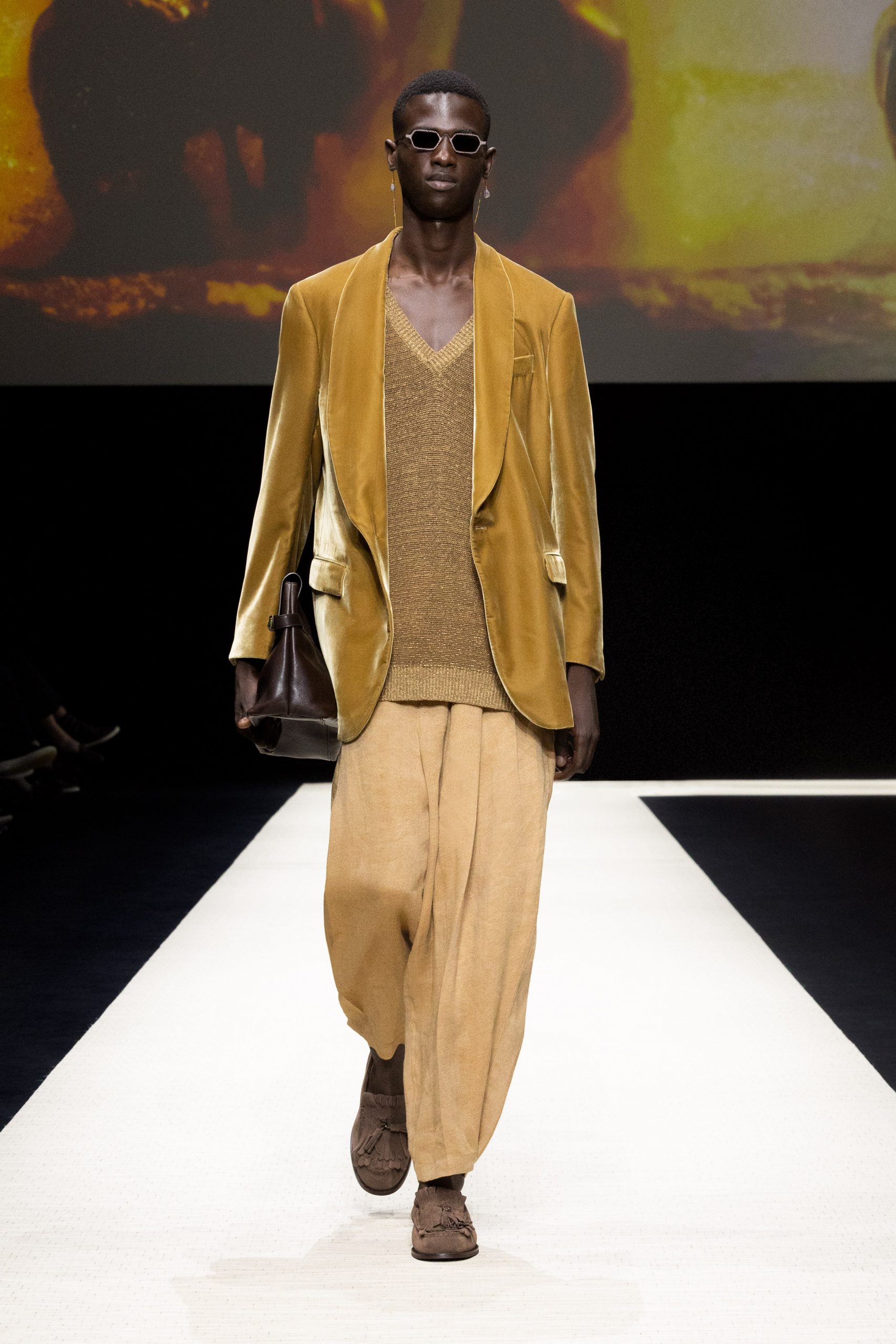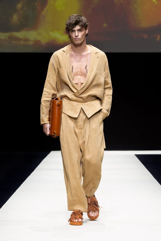 Thật khó để có thể thoải mái ngắm nhìn những đường chân trời nơi phố thị đông đúc, đôi khi ngột ngạt. Nhưng với thiên nhiên thì khác, đó là nơi đường chân trời luôn rộng mở, là những cánh đồng trải dài bất tận, những triền đồi thoai thoải, hay bờ biển hòa quyện cùng đường chân trời. Bộ sưu tập Xuân-Hè 2025 đã đưa Nhà thiết kế Emporio Armani thoát khỏi nơi đô thị quen thuộc. Trên con chiến mã đang phi thoăn thoắt, Nhà thiết kế đã xuyên qua bình minh rực rỡ, những cánh đồng hoa oải hương và lúa mì trải dài bất tận, toát lên tinh thần độc lập mãnh liệt. Nhà thiết kế đã tìm lại được sự tự do của một cuộc sống hòa mình cùng thiên nhiên, rũ bỏ những bộn bề của phố thị. Trang phục khoác lên mình cũng như tuyên ngôn cho sự mềm mại và gợi cảm đầy lôi cuốn.