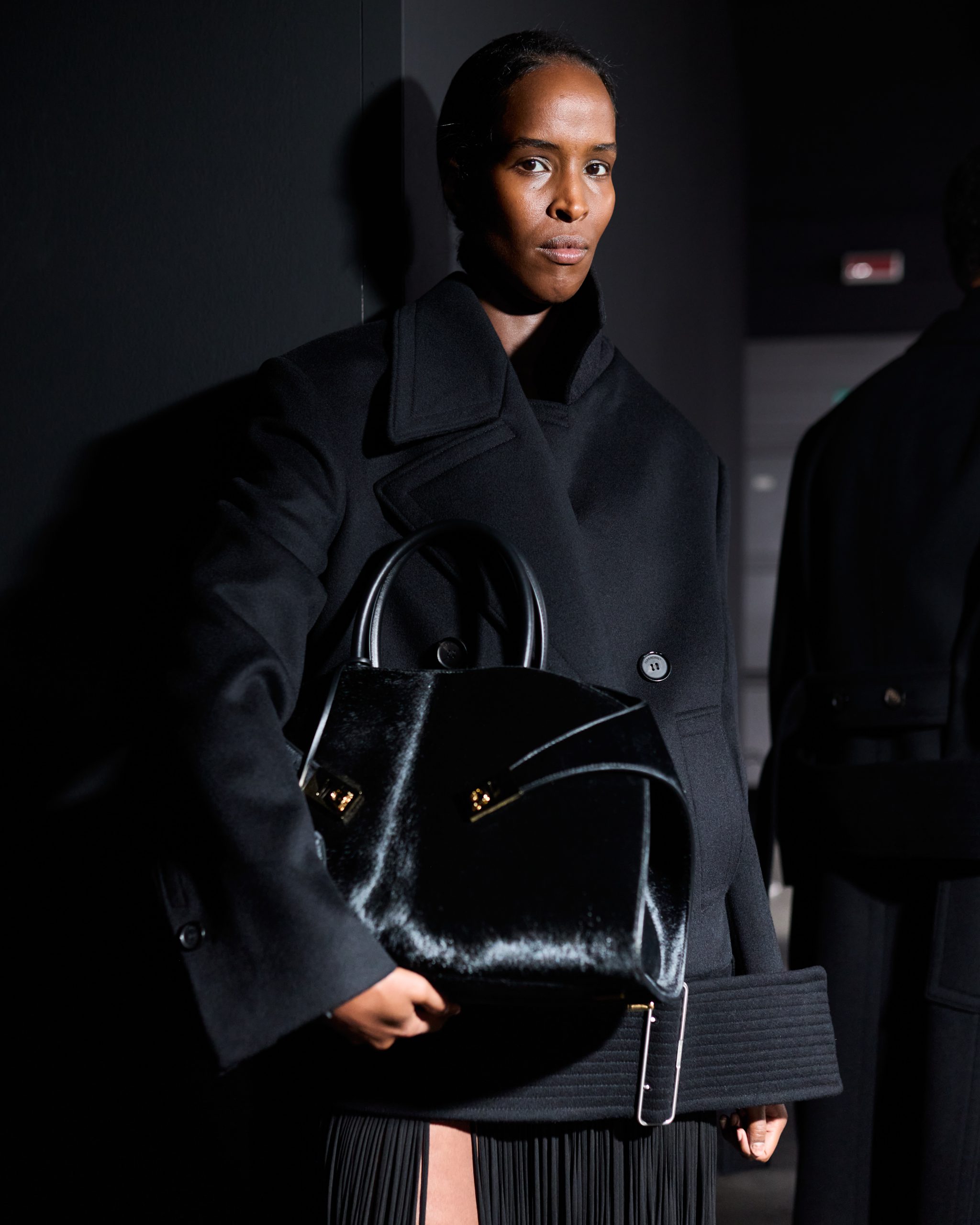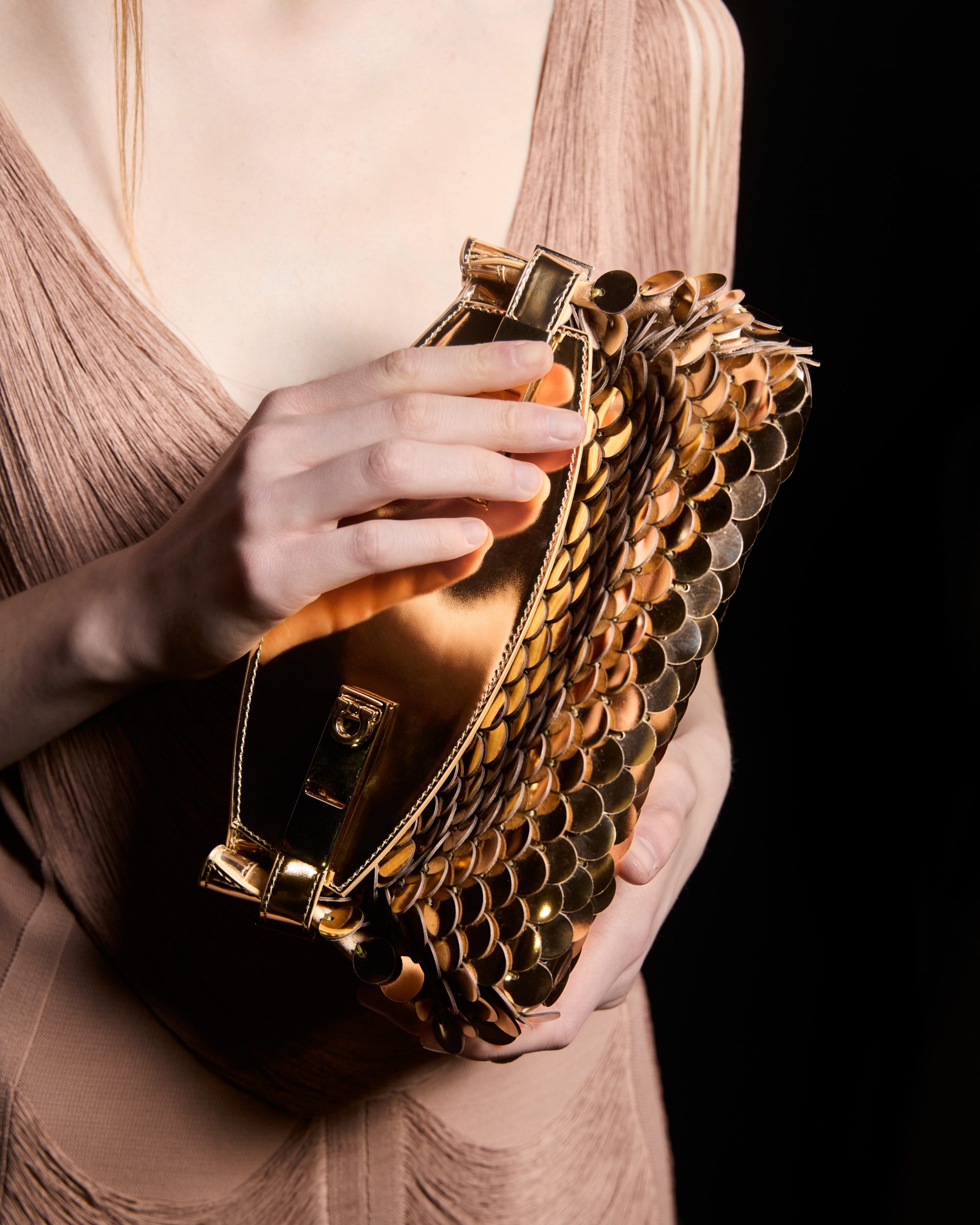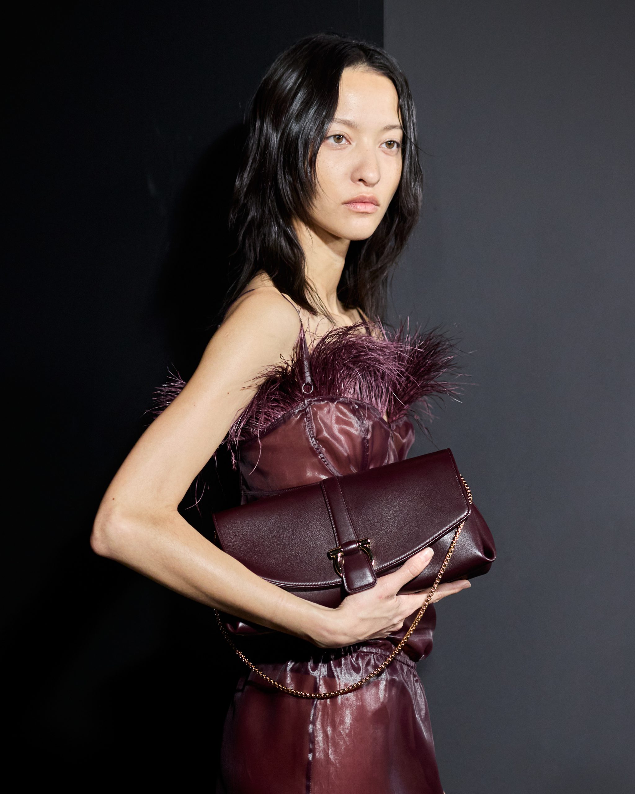 Phụ kiện phối theo mùa của chiếc túi Hug mang tính biểu tượng được đính hạt và lông vũ kiến tạo nên một Ferragamo mới. Tuyệt kỹ thủ công của Ferragamo được phô diễn qua 950 hạt sequin đính bằng tay trên nhiều lớp da trong vòng 19 giờ đồng hồ để tạo hiệu ứng vảy cá óng ánh. Mẫu túi Fiamma cũng trình làng kích thước mới với hoạt ảnh bóng mờ sinh động tái hiện lại BST. BST Thu-Đông lần này ra mắt phong cách túi xách hoàn toàn mới với đường cong nhẹ nhàng, thanh thoát với khóa cài Gancini được lấy cảm hứng từ hoa huệ- biểu tượng của thành phố Florence, nơi đây cũng là quê hương của Ferragamo.