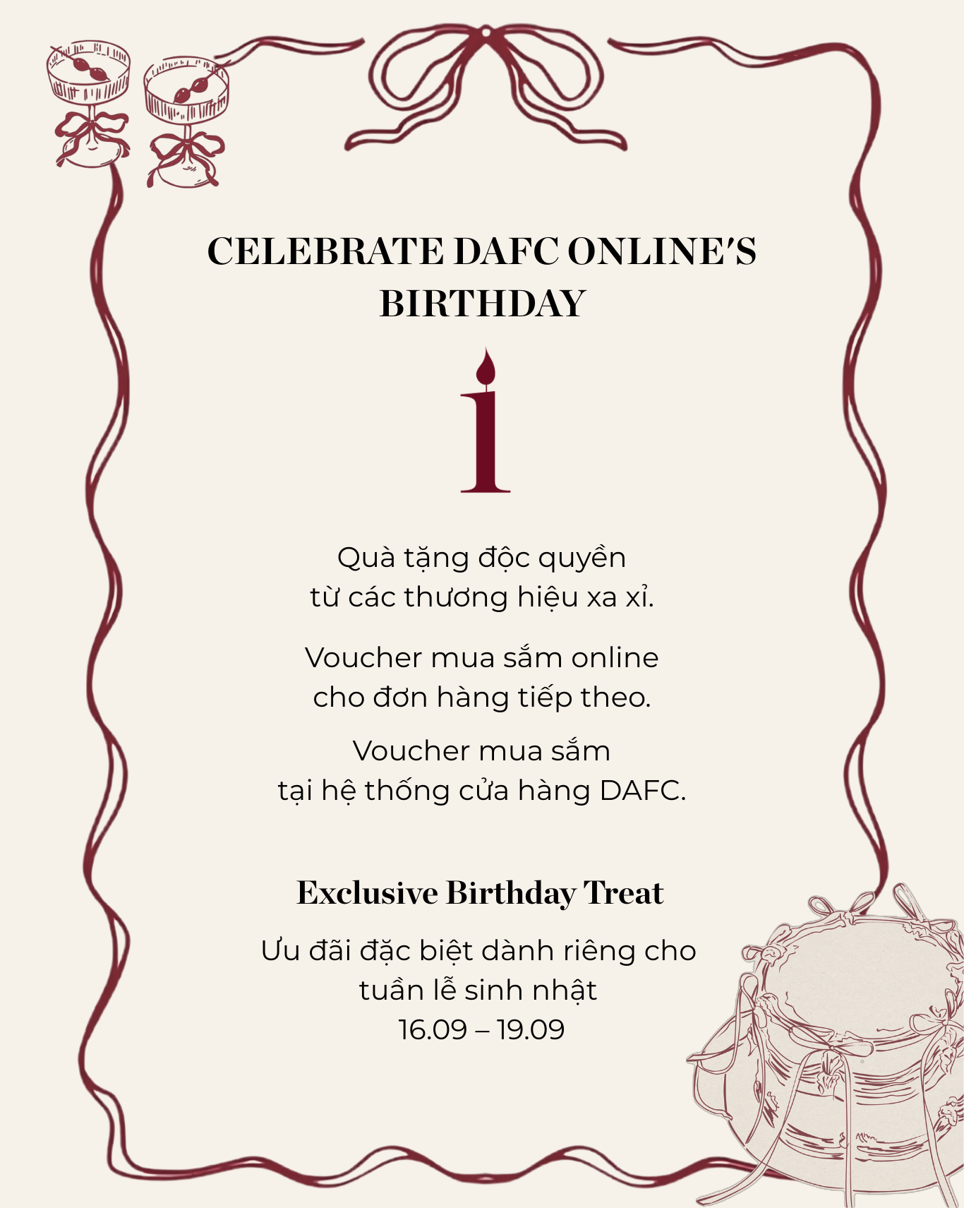 Khám phá và trải nghiệm mua sắm trực tuyến chuẩn quốc tế cùng hơn 25 thương hiệu xa xỉ hàng đầu. Tại DAFC ONLINE, từng sản phẩm được tuyển chọn tỉ mỉ, mang lại sự độc quyền, dịch vụ đẳng cấp và đặc quyền dành riêng cho thành viên DAFC.