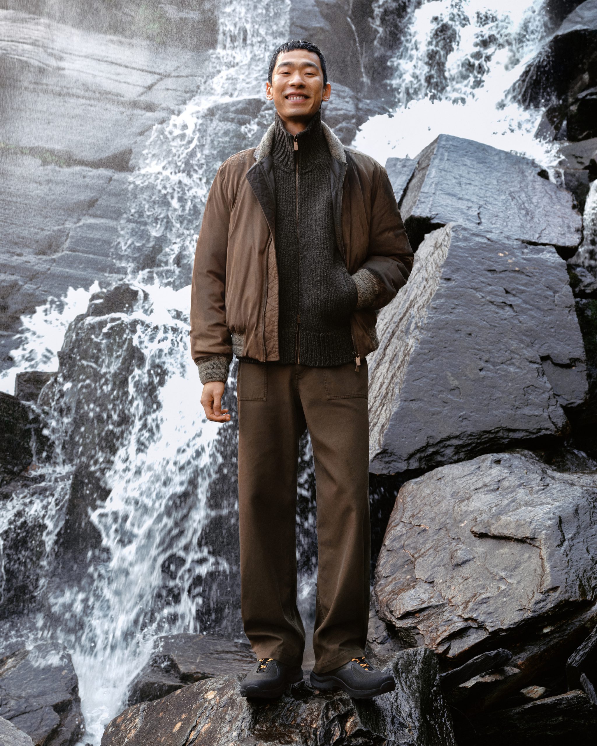 Bên dưới các lớp áo khoác là hệ sinh thái phối lớp mang tính ứng dụng cao, với knitwear wool–cashmere dệt gân dày dặn, cùng các thiết kế cotton jersey như hoodie, T-shirt hay jogging pants. Những chi tiết đặc trưng của trench coat từ cầu vai đến các mảng gabardine panels xuất hiện tinh tế, tạo nên sự tiếp nối mạch di sản trong từng chuyển động thường nhật.