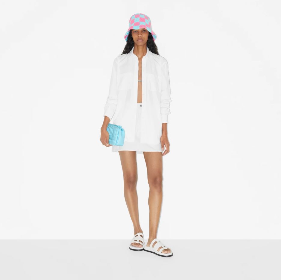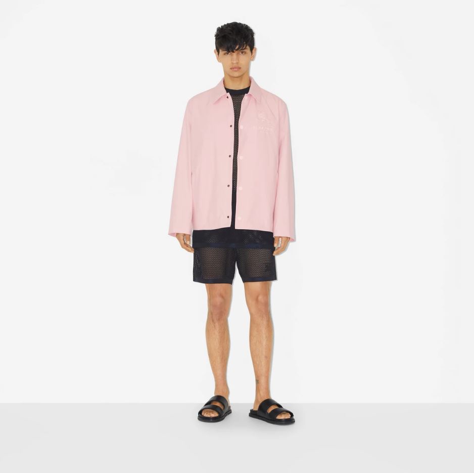 Nếu sự kiện thay đổi logo trong chiến dịch House vào tháng 2 vừa qua là dấu hiệu đầu tiên của Daniel Lee trong công cuộc tái sáng tạo hình ảnh Burberry; thì BST Hè năm nay thể hiện bước chuyển mình rõ rệt nhất, với sự xuất hiện dày đặc của logo Hiệp sĩ Cưỡi ngựa (EKD) trứ danh trong các mẫu thiết kế mang hơi thở mùa Hè.