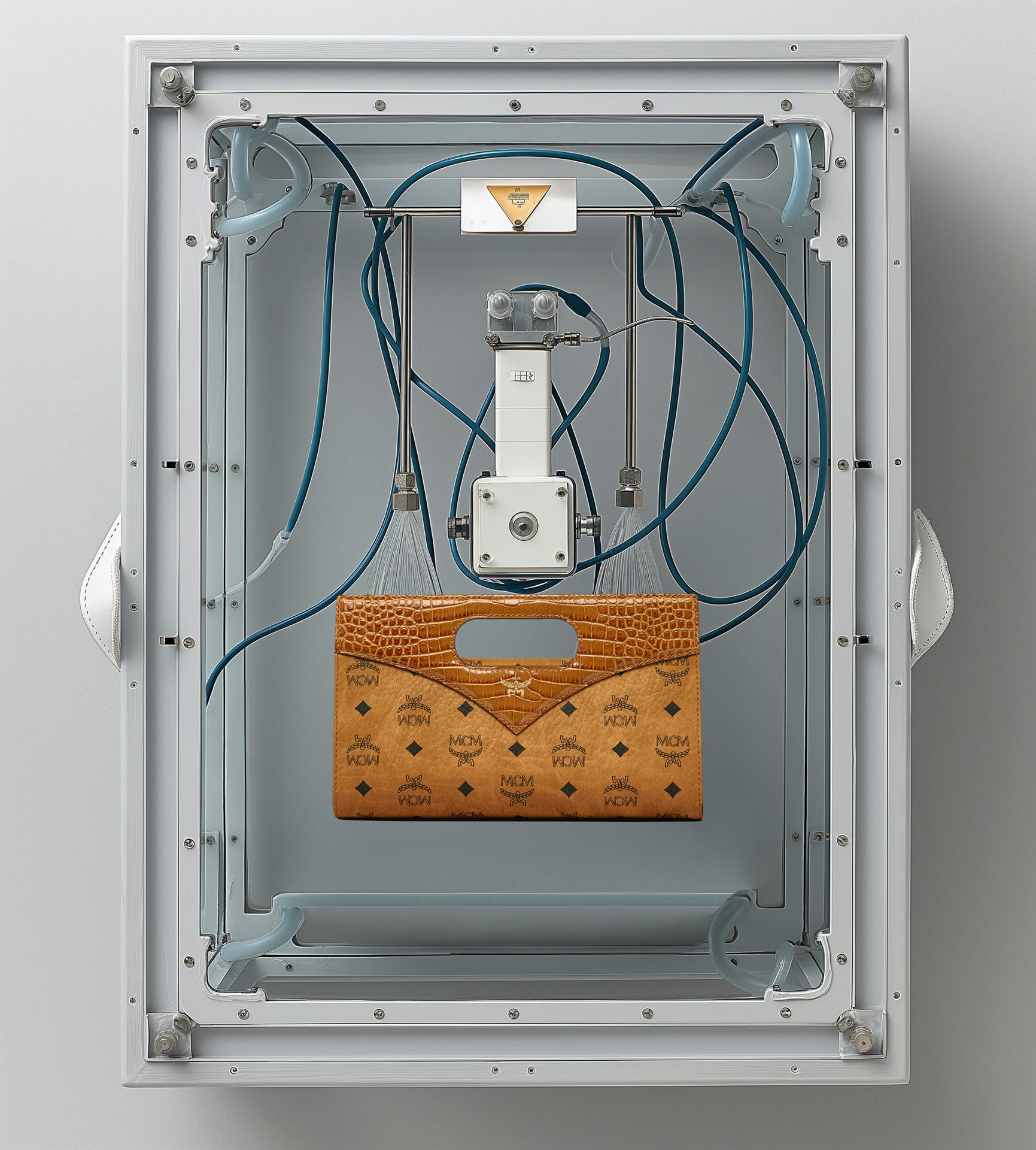 Chiếm giữ vị trí trung tâm của chuyến phiêu lưu ngoài vũ trụ này chính là thiết kế túi Diamant 3D – một kiệt tác được tạo ra bởi đội ngũ sáng tạo của MCM dưới tầm nhìn và sự chỉ đạo nghệ thuật của Giám đốc Sáng tạo Toàn cầu Katie Chung. Thiết kế túi Diamant 3D tái hiện lại chiếc ví cầm tay Diamant clutch cổ điển trong phom dáng ba chiều đầy táo bạo, cân bằng giữa yếu tố thẩm mỹ và tính chức năng. Sở hữu khóa kéo chắc chắn, Diamant 3D là món phụ kiện hoàn hảo chinh phục người hâm mộ yêu xê dịch thời trong đại kỹ thuật số.