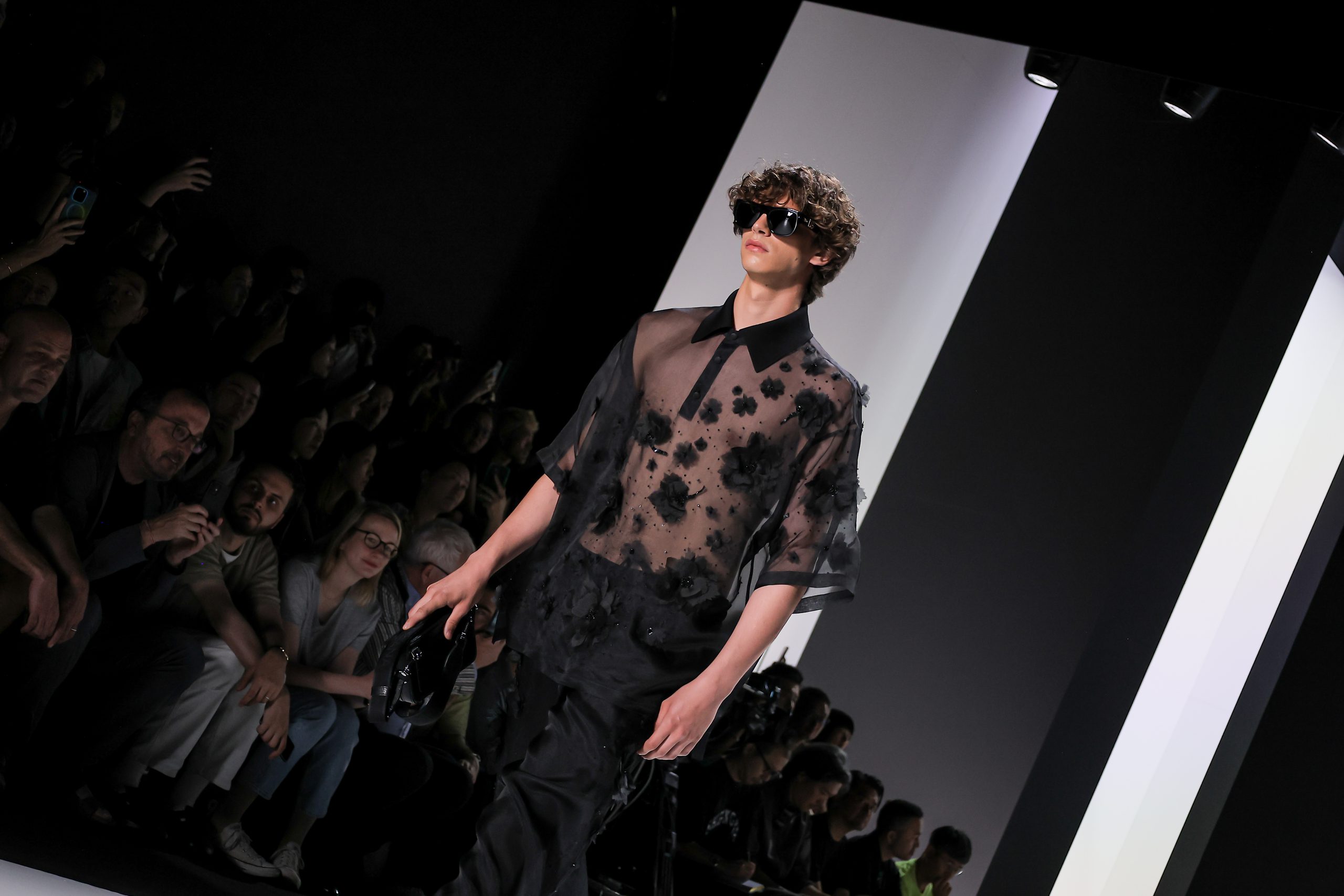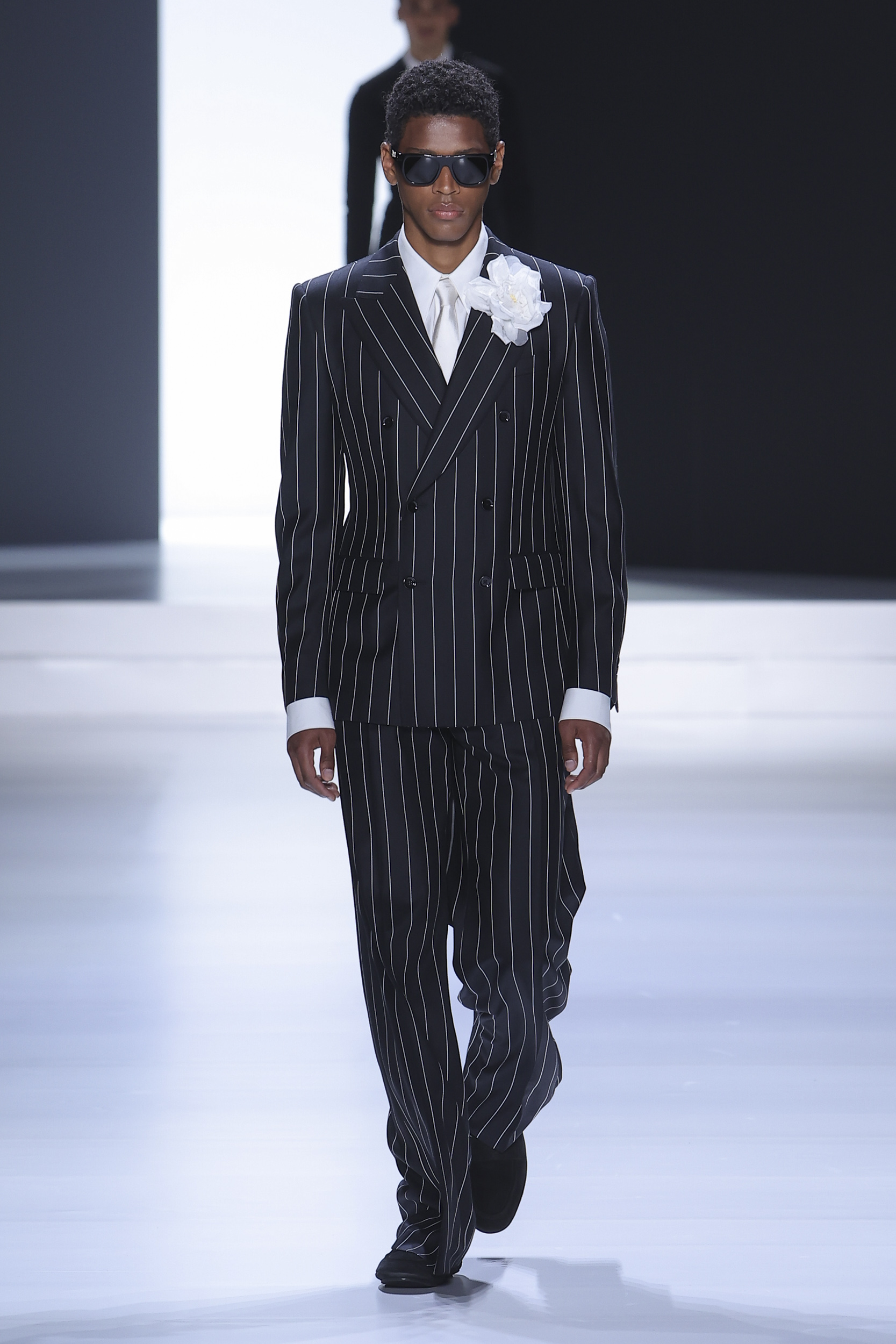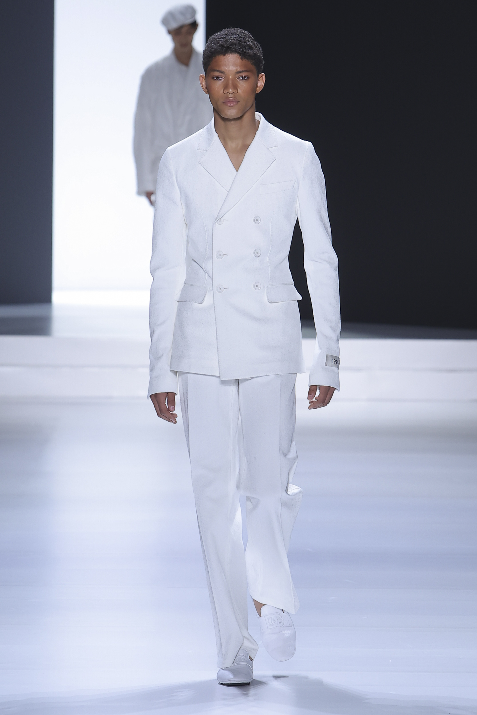 BST là sự tiếp nối của color block – Phong cách của những khối màu, từ sắc trắng tinh khôi, trắng sữa, màu cát, nâu lạc đà, nâu đậm, màu ngọc trai hay xám đá, đến màu sắc đặc trưng không thể thiếu – màu đen Sicily. Dolce&Gabbana đã sử dụng vải thêu cùng chất liệu len Piacenza với những đặc tính cố hữu để làm nên độ cứng cáp trong form dáng của các thiết kế; những bộ suits và áo khoác cũng vì vậy mà được trao cho một sứ mệnh mới, tựa như một tác phẩm điêu khắc tôn lên cơ thể nam giới. Áo choàng với lớp lông cashmere kép, lụa crepe, hiệu ứng 3D dập trên vải jersey và hình thêu trên nền voan lụa organza.