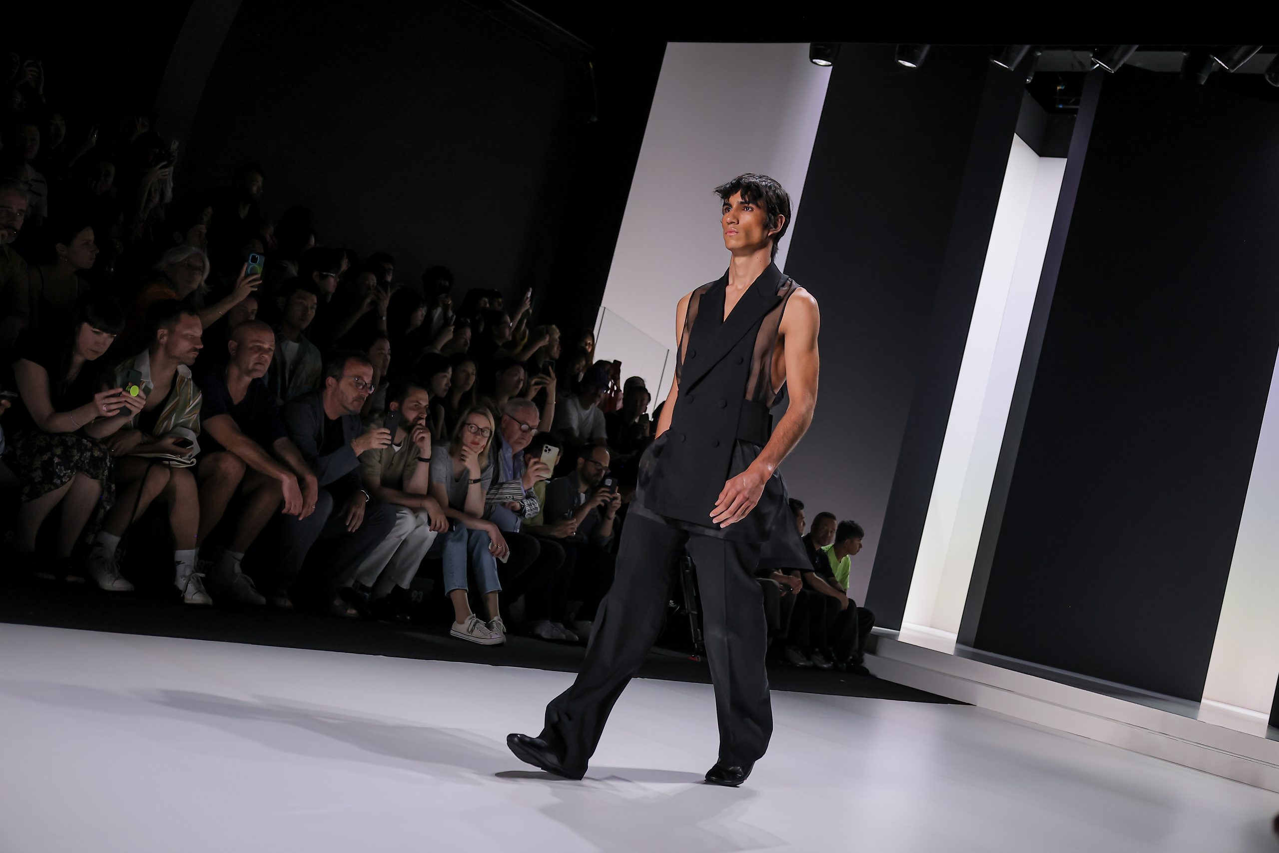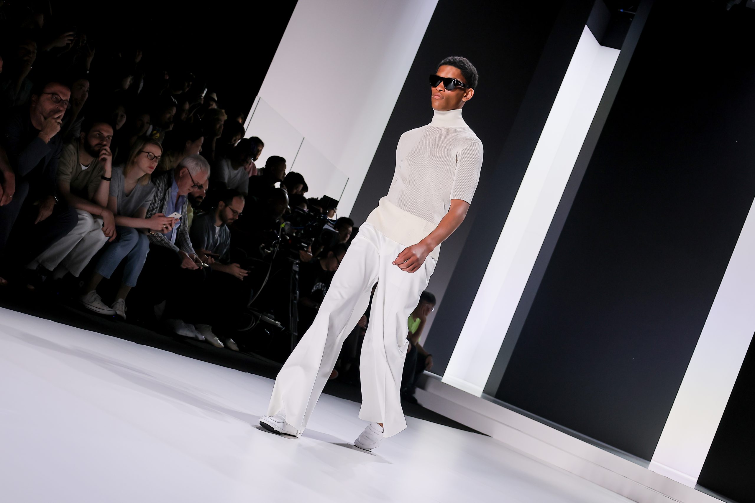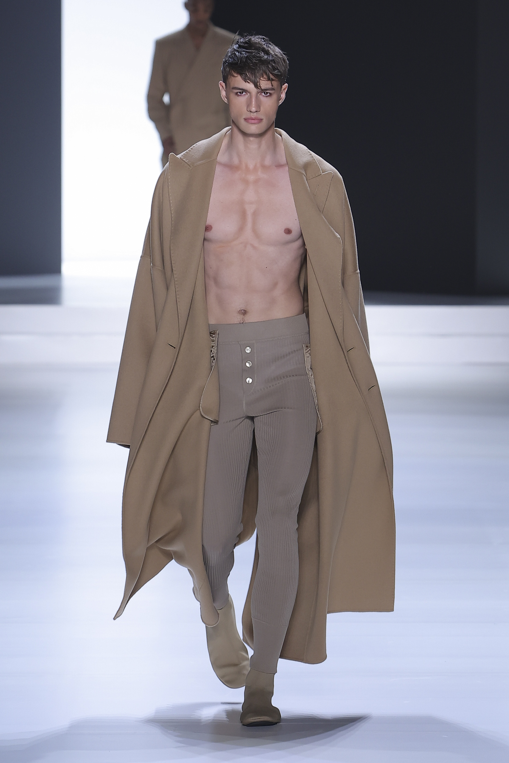 BST là sự tiếp nối của color block – Phong cách của những khối màu, từ sắc trắng tinh khôi, trắng sữa, màu cát, nâu lạc đà, nâu đậm, màu ngọc trai hay xám đá, đến màu sắc đặc trưng không thể thiếu – màu đen Sicily. Dolce&Gabbana đã sử dụng vải thêu cùng chất liệu len Piacenza với những đặc tính cố hữu để làm nên độ cứng cáp trong form dáng của các thiết kế; những bộ suits và áo khoác cũng vì vậy mà được trao cho một sứ mệnh mới, tựa như một tác phẩm điêu khắc tôn lên cơ thể nam giới. Áo choàng với lớp lông cashmere kép, lụa crepe, hiệu ứng 3D dập trên vải jersey và hình thêu trên nền voan lụa organza.