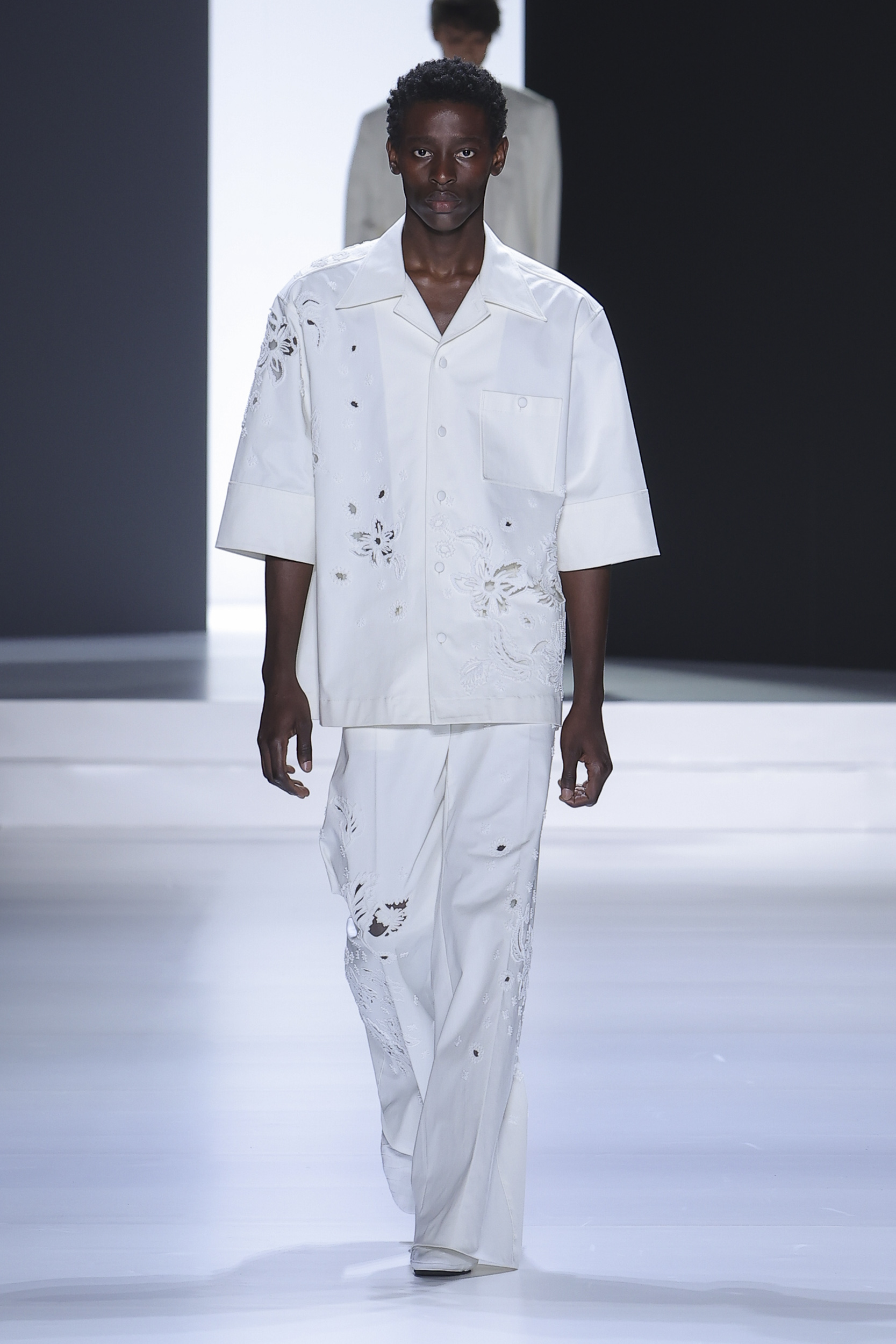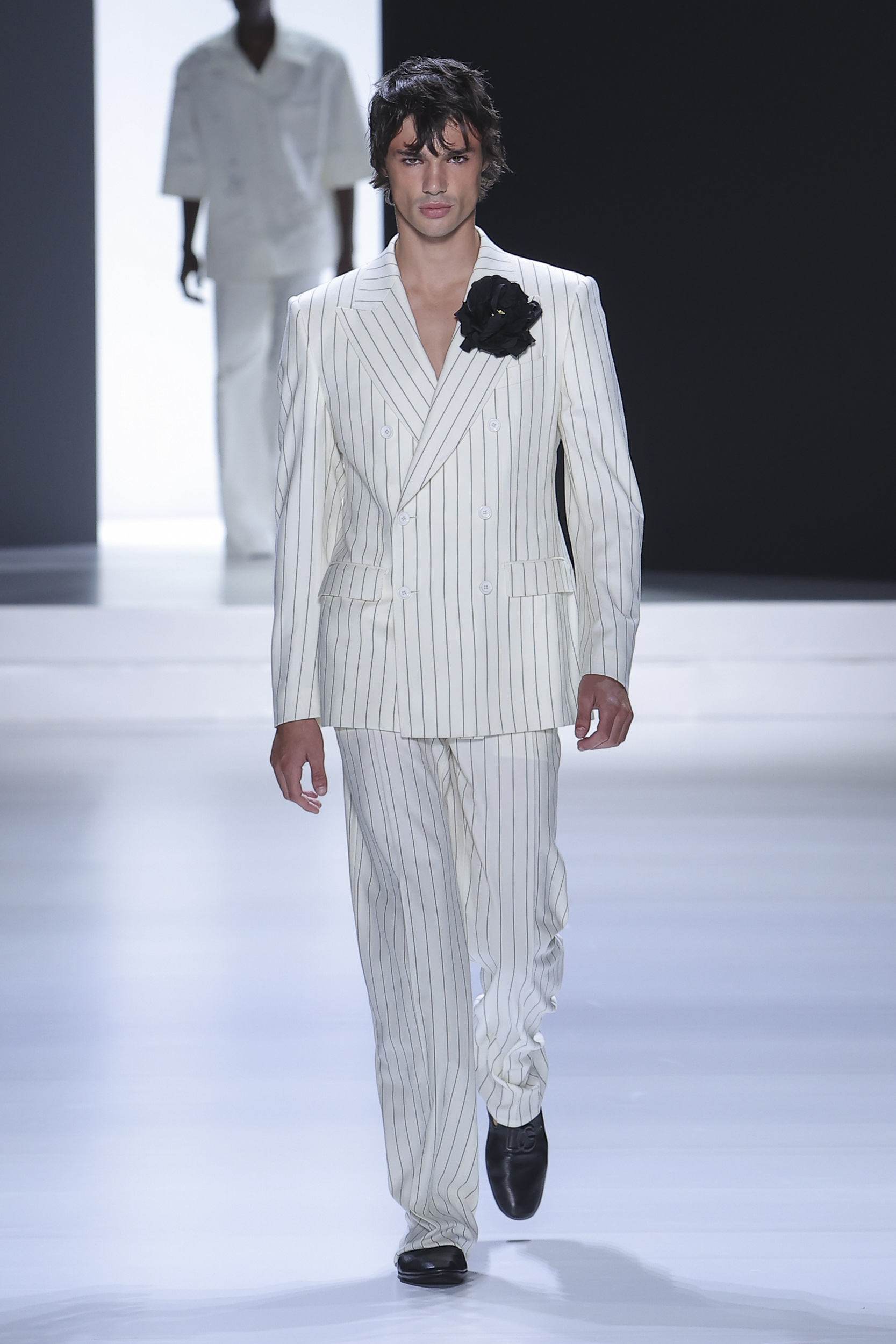Cùng với hoa, một điểm nhấn khác là những chiếc trâm cài trên ve áo. Những bộ suit bằng ren Chantilly với đa dạng sắc thái theo sau bởi chiếc áo vest hở lưng được kéo dài tỉ lệ đồ, được nhấn nhá thêm với dây buộc và băng dán velcro cố định. Các chi tiết điểm xuyết được làm bằng chất liệu jersey tổng hợp cùng tông giúp nhấn mạnh hơn nữa ý niệm về hình khối và yếu tố điêu khắc trong cả BST. Chi tiết nhún ly được tạo ra bằng cách xếp chồng nhiều lớp vải cùng chi tiết quá khổ (oversize) đóng vai trò tiếp nối đến các chi tiết vặn xoắn, vải len gân, tạo nên tổng thể trang phục mang hơi hướng phóng khoáng của vùng Sicily.