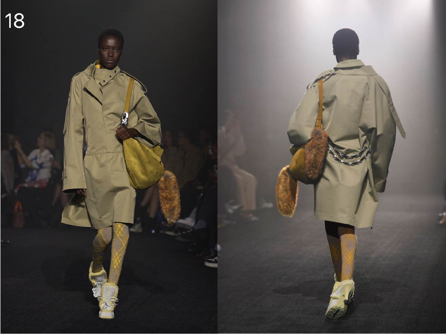 BST cũng bao gồm những mẫu áo khoác ngoài đa dạng như áo khoác duffle, áo car coat và đặc biệt là những chiếc áo khoác trench coat di sản được phá cách với phom dáng oversized cùng ve áo giả lông. Ngoài ra, còn có những mẫu giày casual mang tính ứng dụng cao trong đời sống và các mẫu túi mới như túi saddle và túi satchel được lấy cảm hứng từ tinh thần khai phá thiên nhiên của thương hiệu.