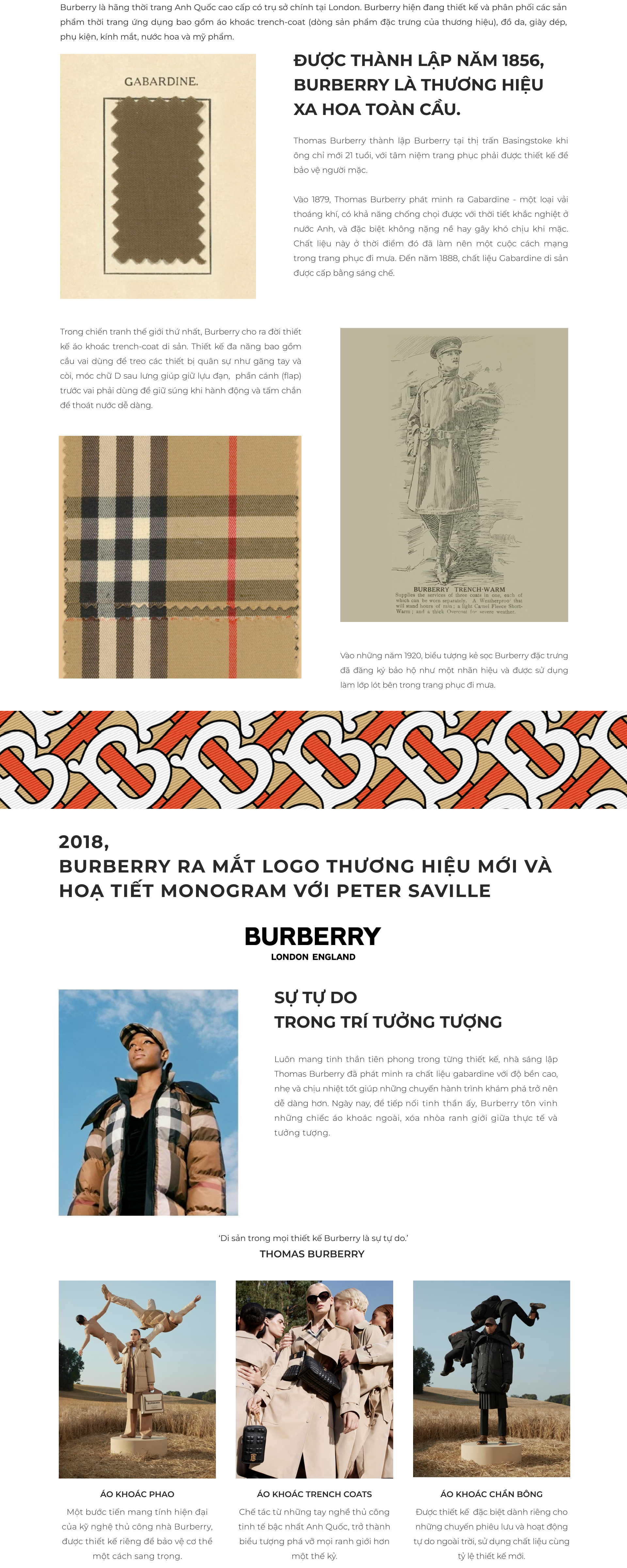 Burberry là thương hiệu tiên phong trong lĩnh vực thời trang sang trọng và áo khoác ngoài mang bản sắc Anh độc bản với cam kết về chất lượng, sự đổi mới và sáng tạo.
